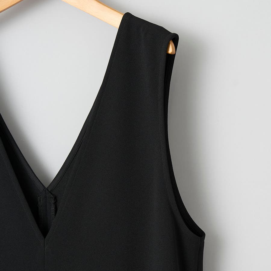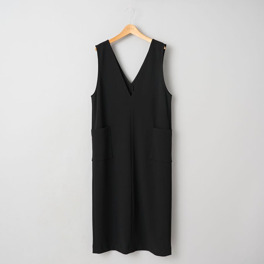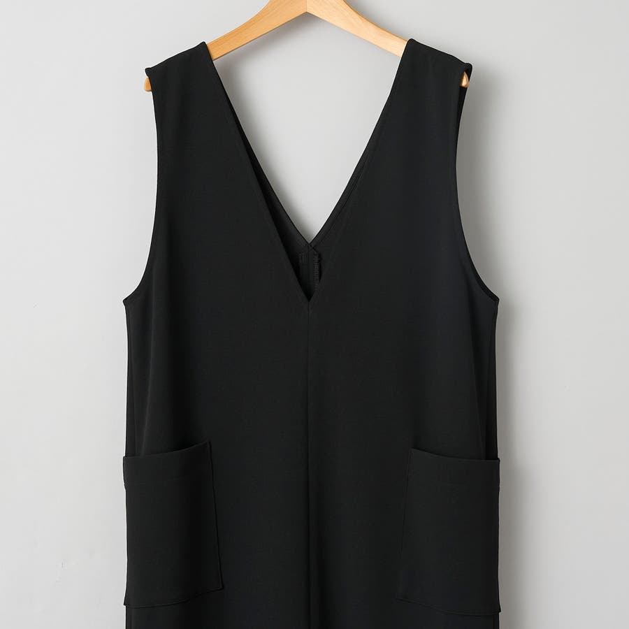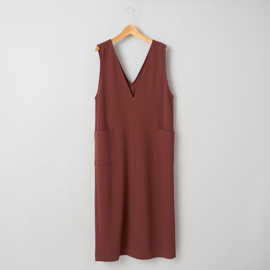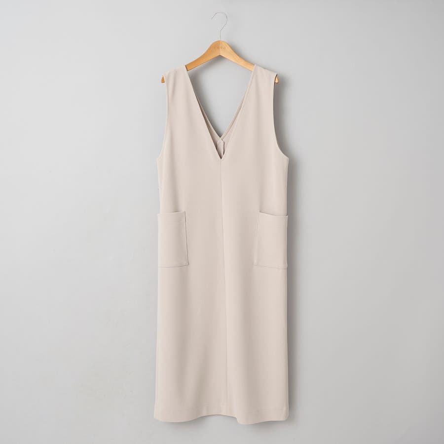 ストレスフリーな生地で仕上げたVネックジャンパースカート。