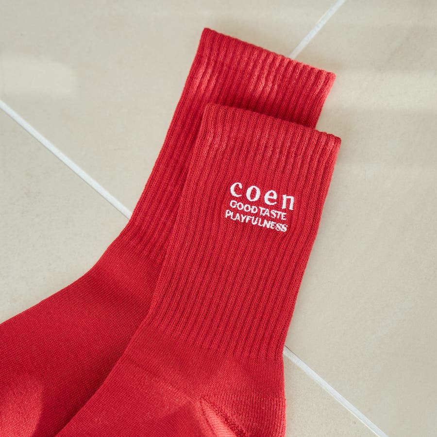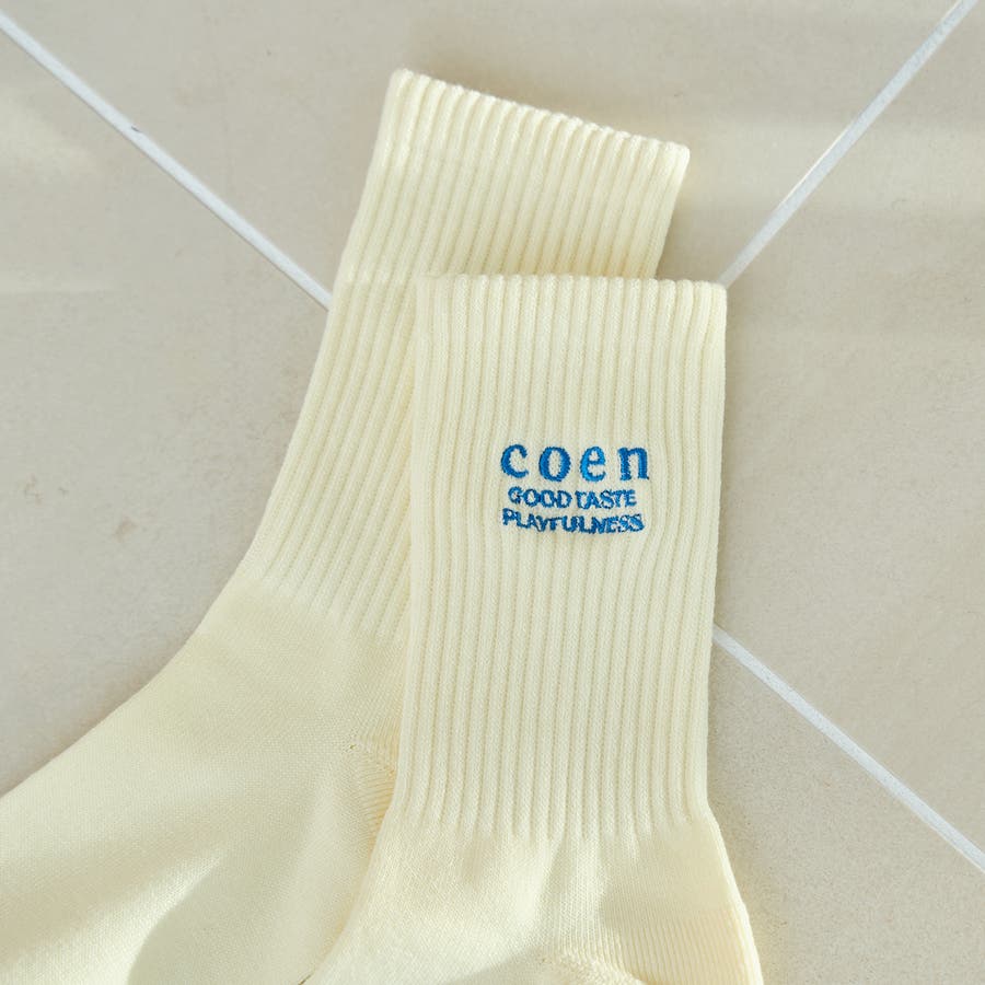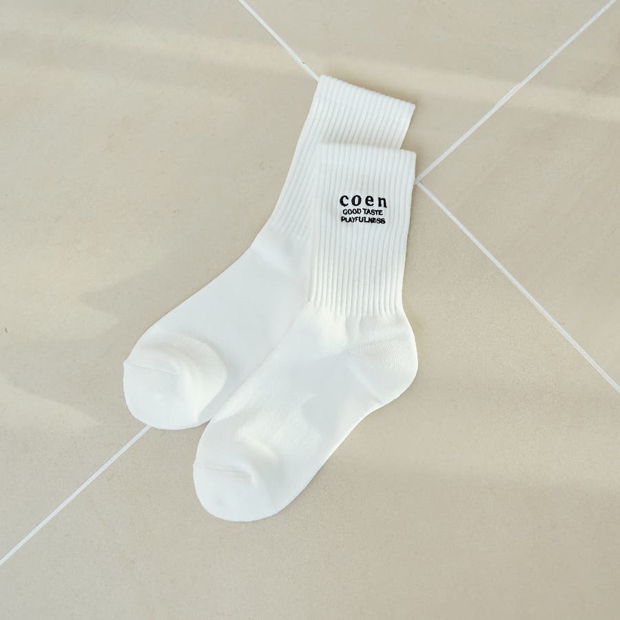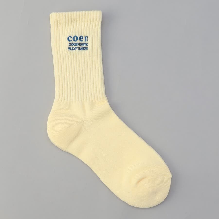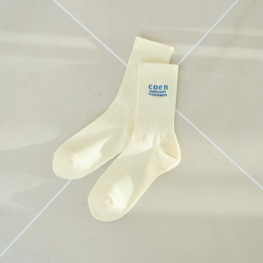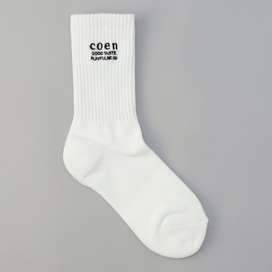 COENのブランドロゴ刺繍がアクセントになった、シンプルで履きやすいリブソックス。