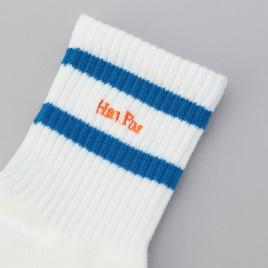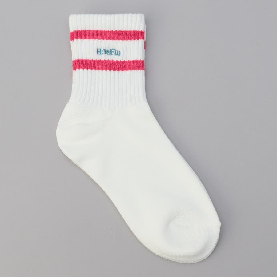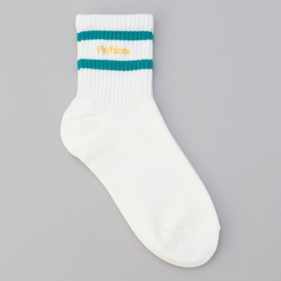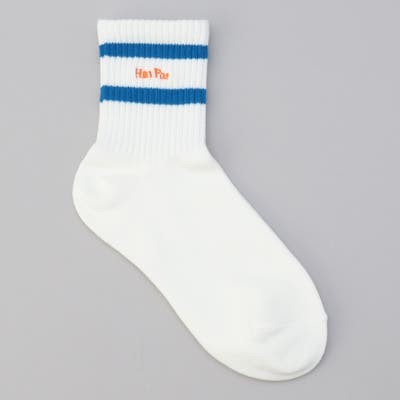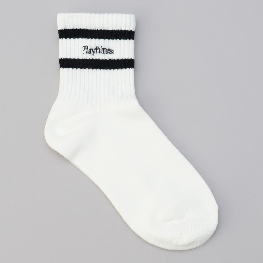 ライン×ロゴ刺繍 クルーソックス