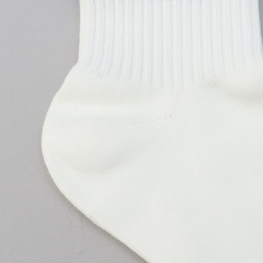 合わせやすい白地ベースで、スニーカーはもちろん、スライドサンダルやスポーツサンダルとも相性抜群。