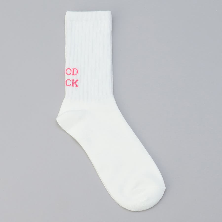 かかとに英字ロゴを配置したクルー丈の靴下。