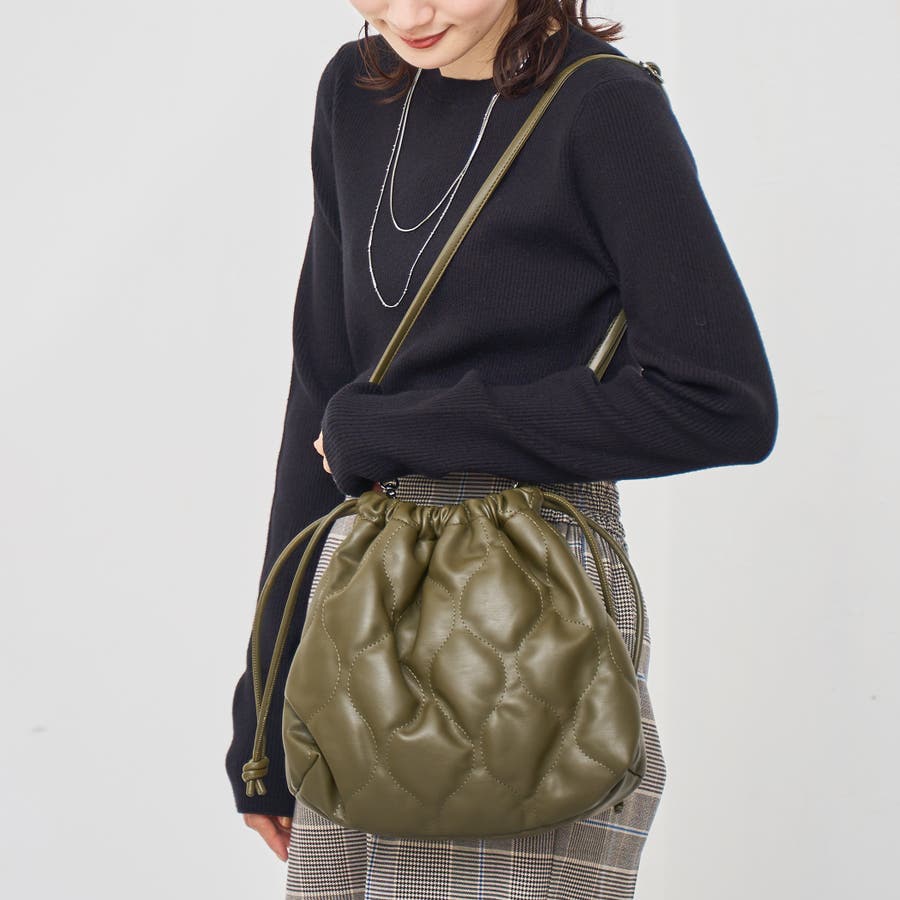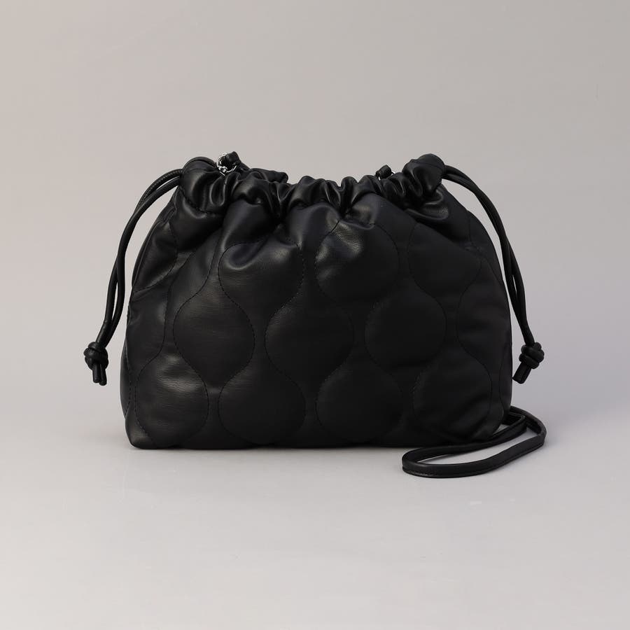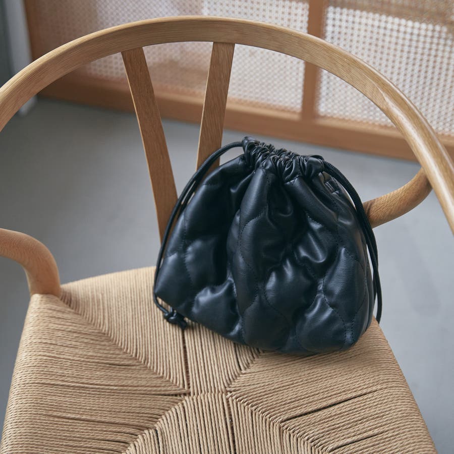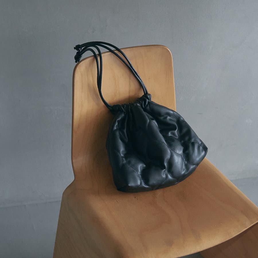 上品な光沢とキルトで魅せる、旬の巾着バッグ