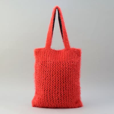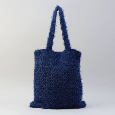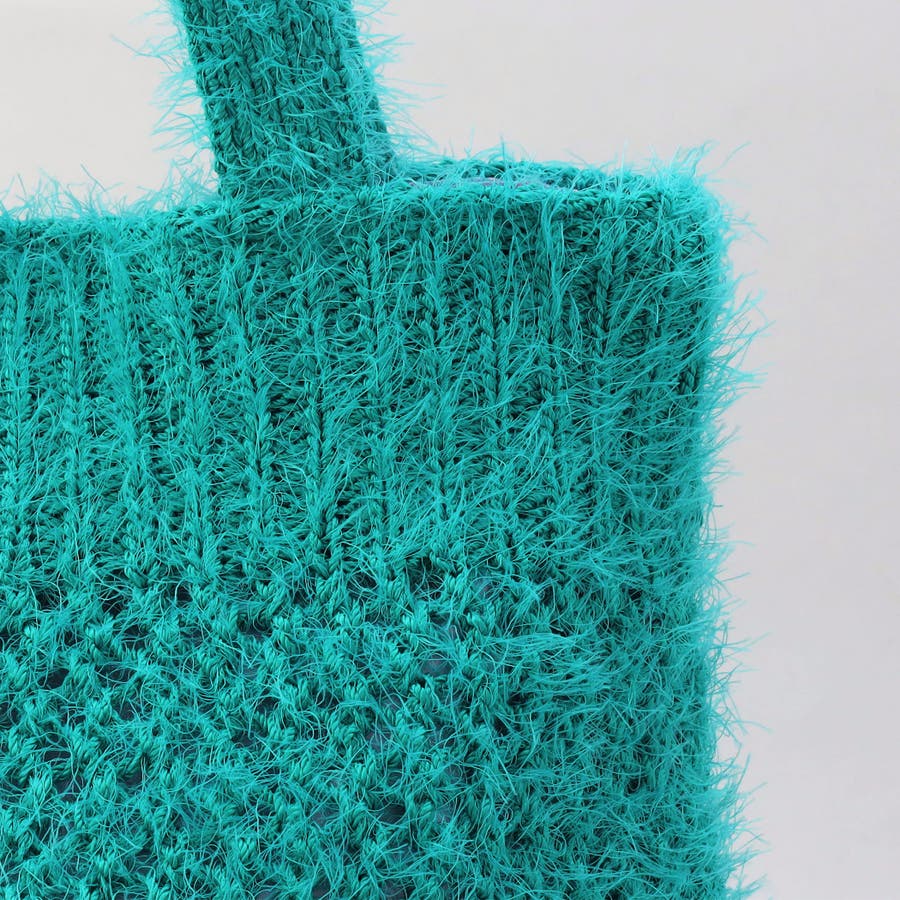 フェザーヤーンを使った、ふわふわ質感のメッシュ編みニットバッグ。