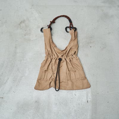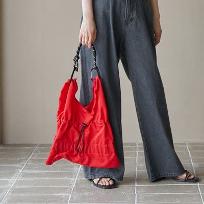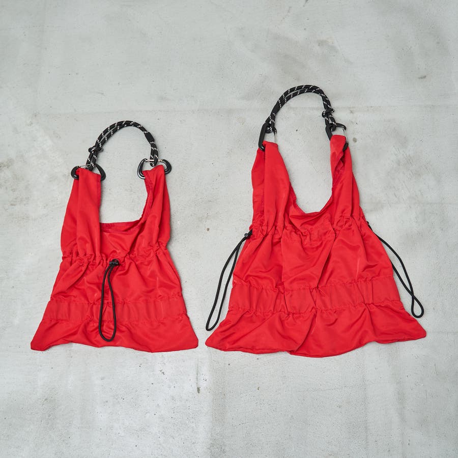 ギャザーが生み出す立体感に、パラコードのアクセントを加えたミニサイズのショルダーバッグ。