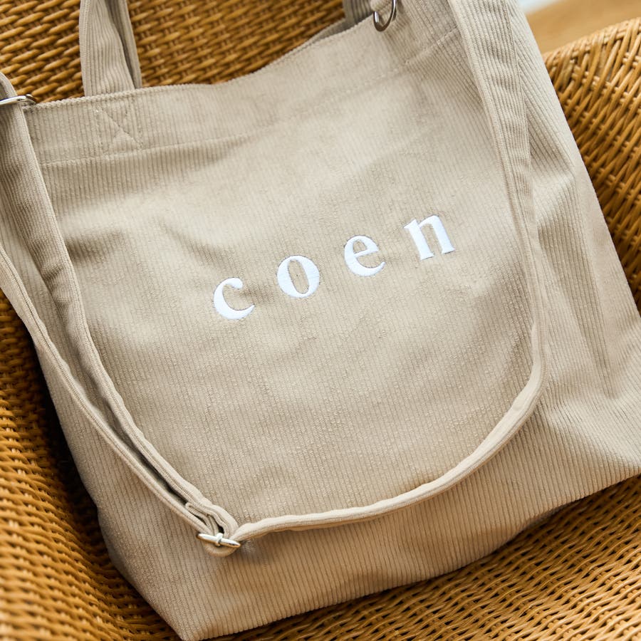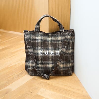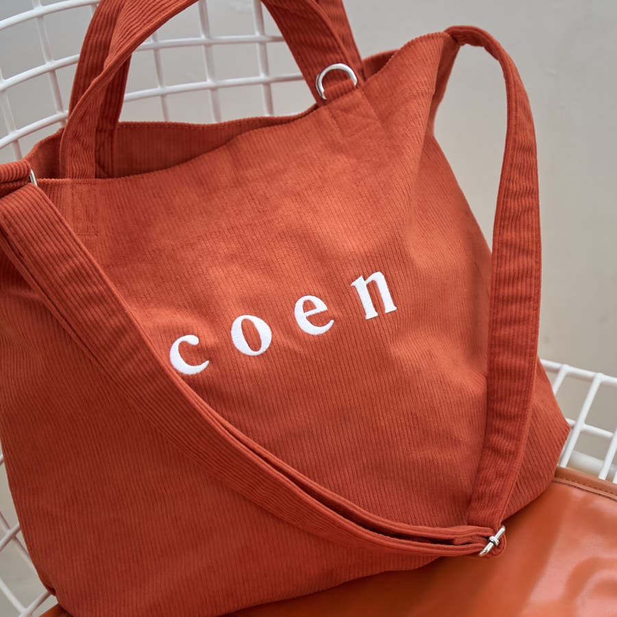 秋冬コーデにぴったり。coen ロゴトートが、コーデュロイ&チェックで新登場!