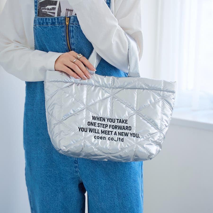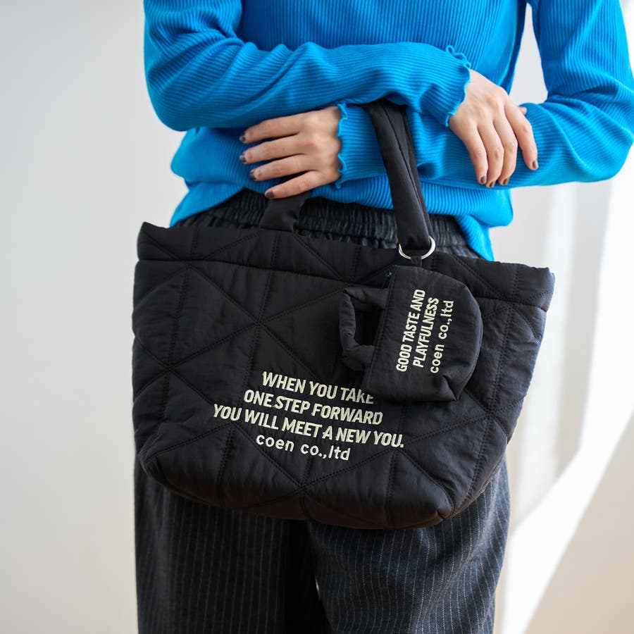 ロゴ刺繍 幾何柄 キルトトートバッグ(品番:76816030333)