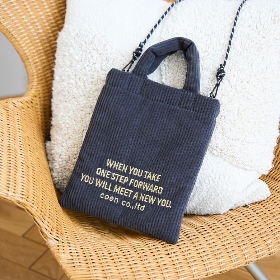 ロゴ刺繍バッグシリーズから、季節感たっぷりのコーデュロイ生地を使ったショルダーバッグが登場。