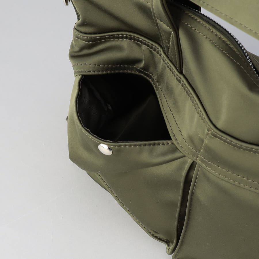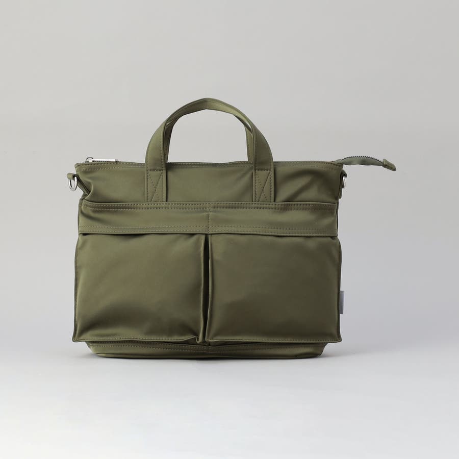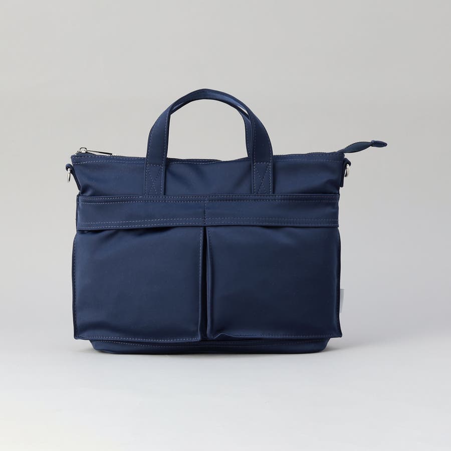 ヘルメットバッグ風デザインを、きれいめな素材感で仕上げました。