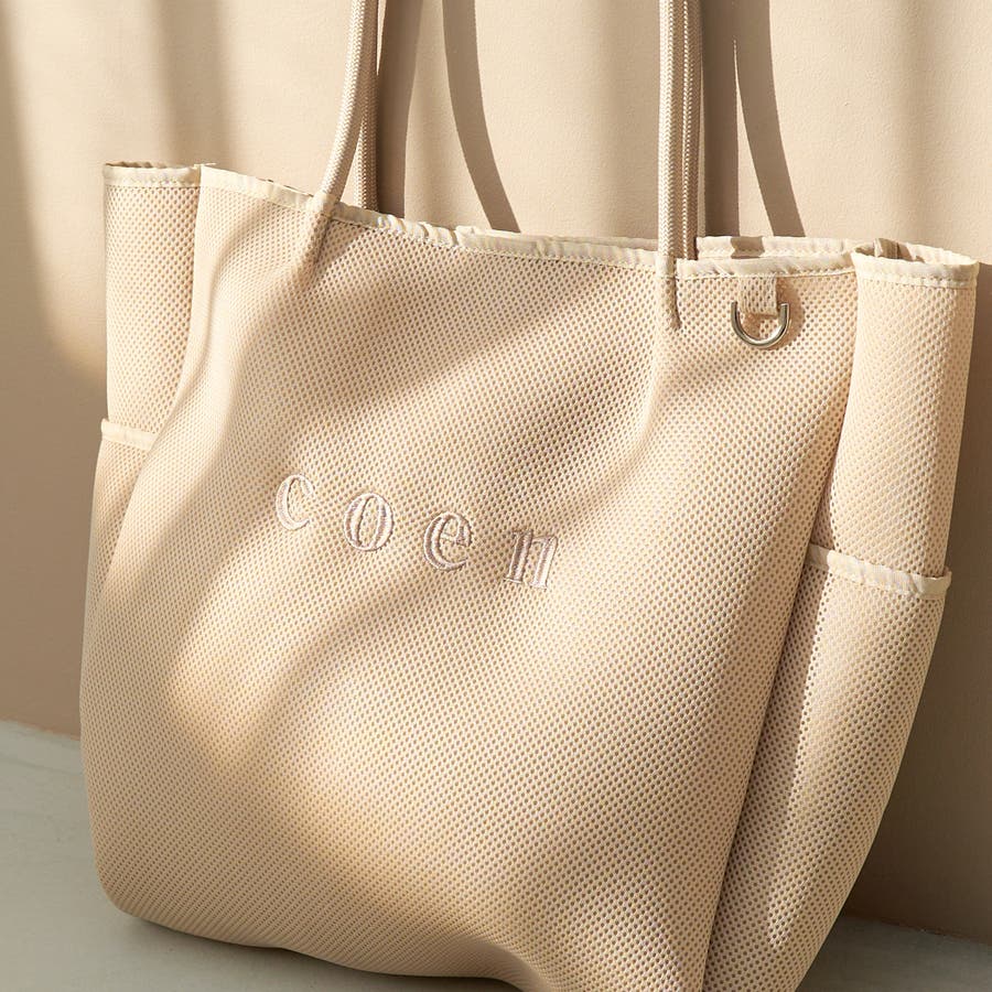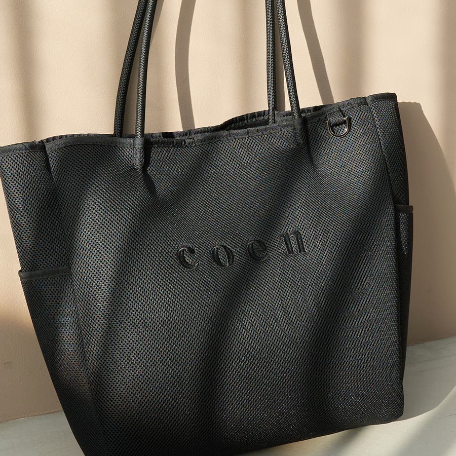 coen(コーエン)ロゴ刺繍 メッシュパフ2wayトートバッグ(Mサイズ)(品番:76816000061)