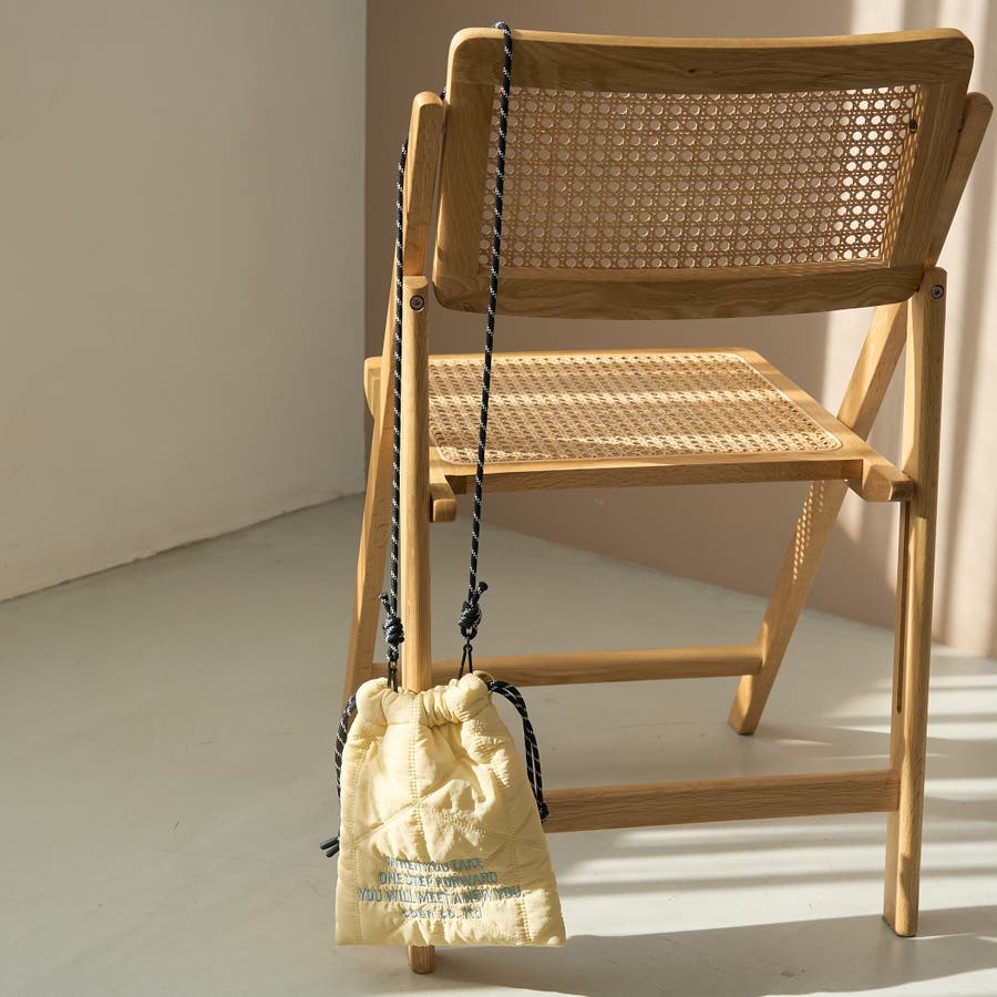 ショルダー付きで肩掛けも可能。ひもをしまって巾着として、