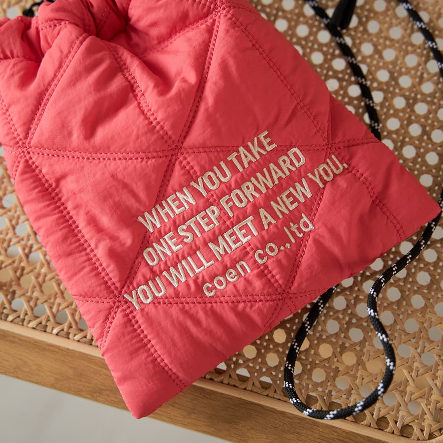 ロゴ刺繍 幾何柄 キルト巾着ショルダーバッグ(品番:76816000036)