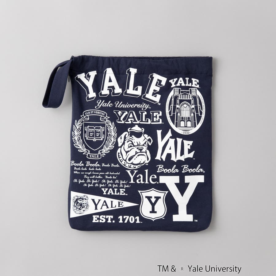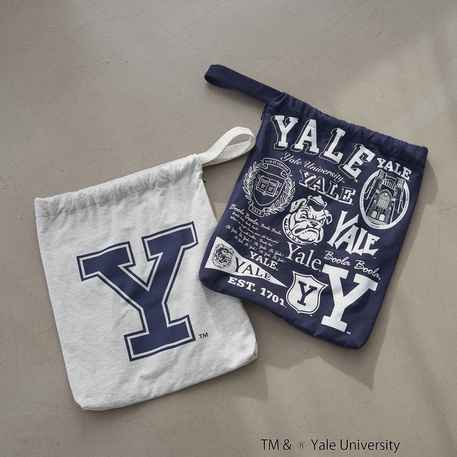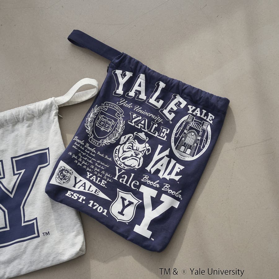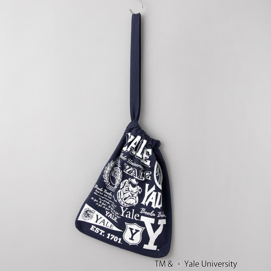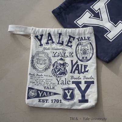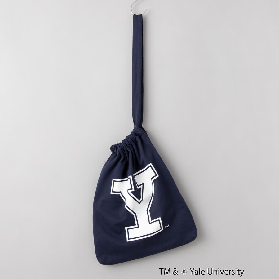 Yale University(イェール大学)のロゴやマスコットを贅沢にあしらった別注デザインの巾着バッグ。