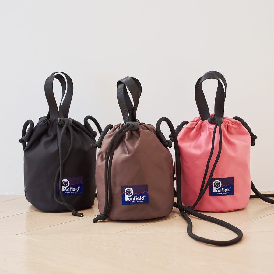 Penfieldのタグをワンポイントにしたシンプルで取り入れやすい巾着型バッグです。
