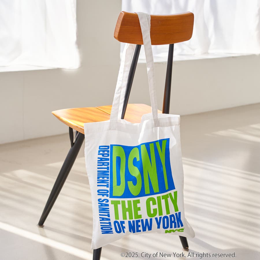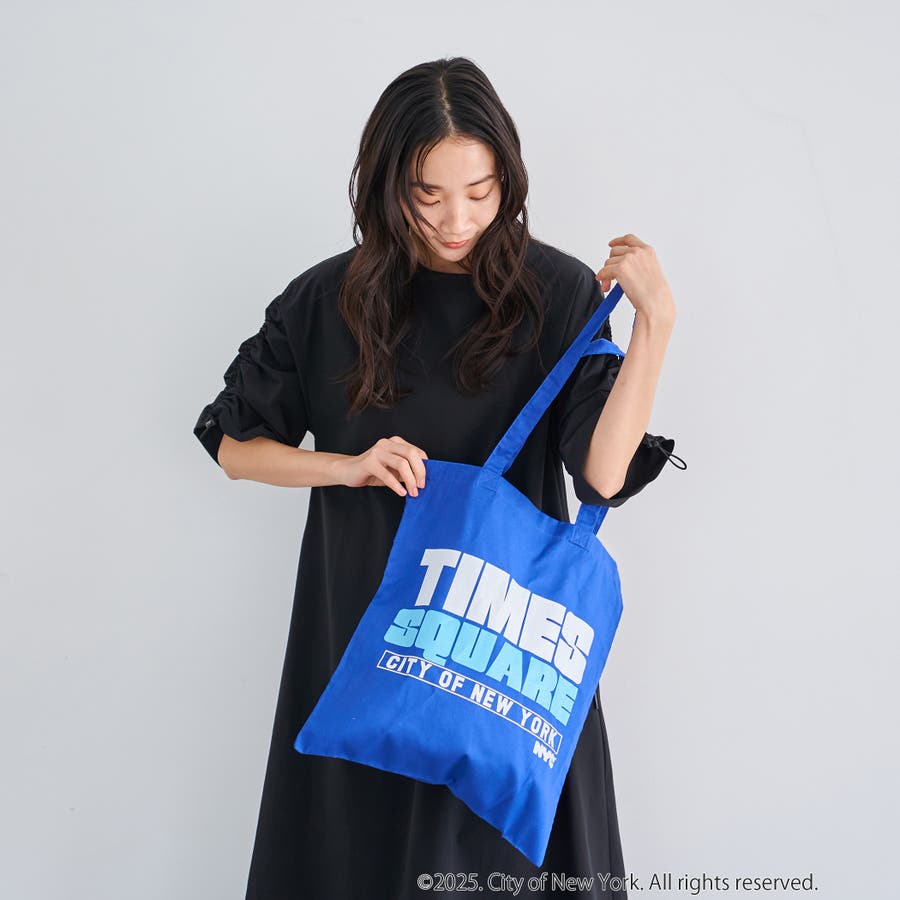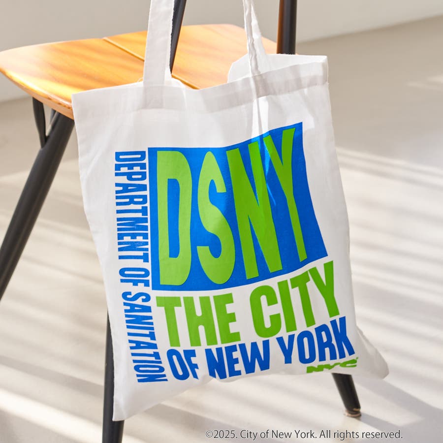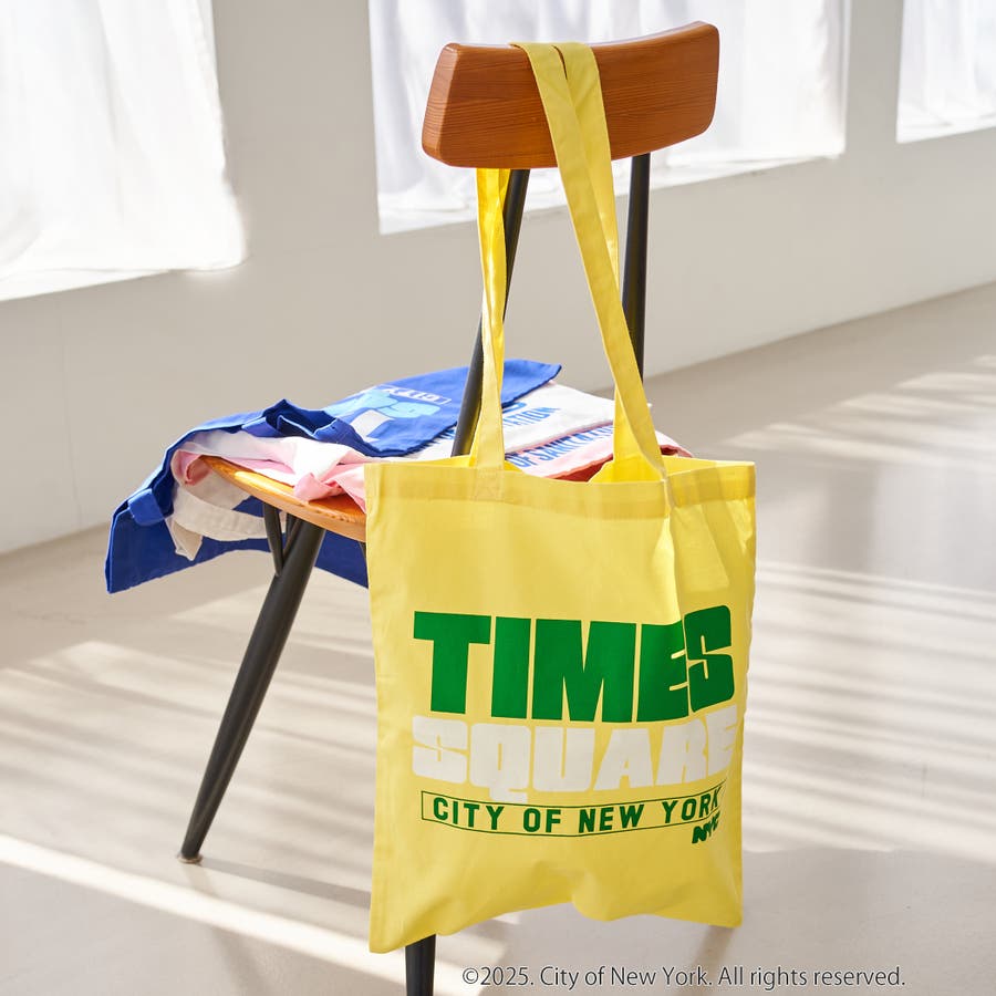 NYC限定デザインのロゴ入りトートバッグ。