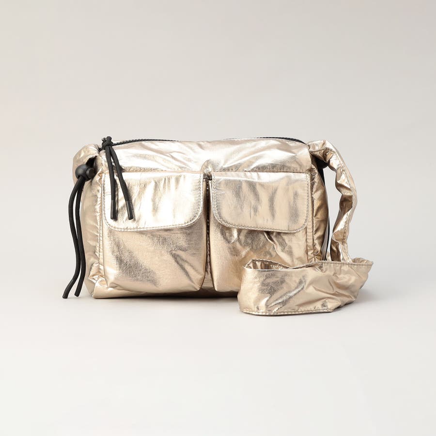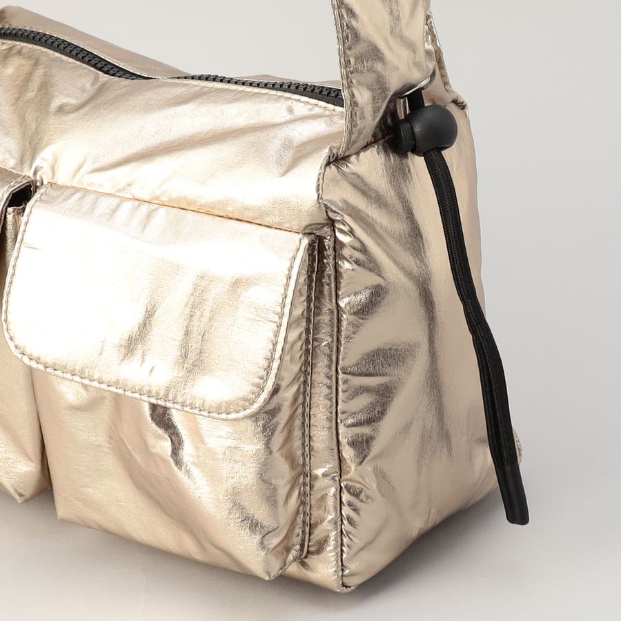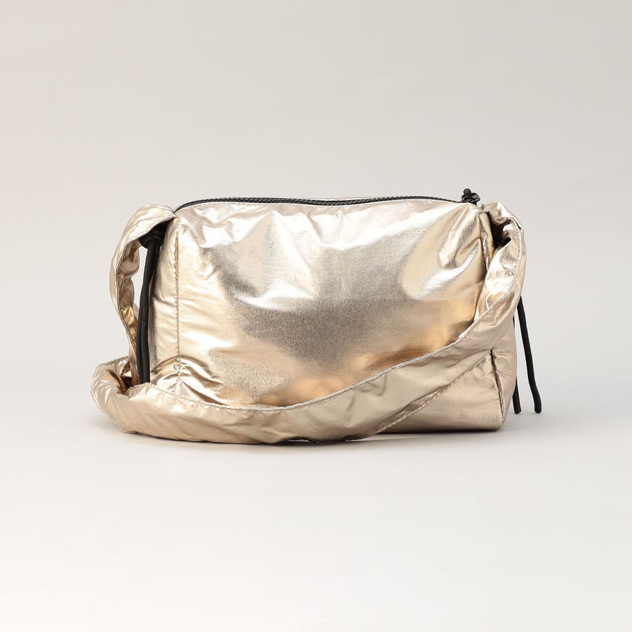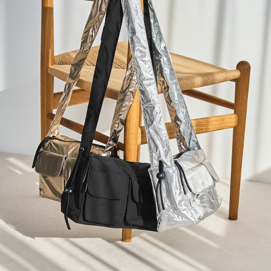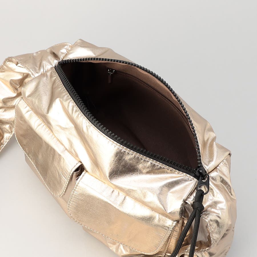 ギャザーの分量感や長さが調整できるので、肩掛けはもちろん手持ちでハンドバッグとしても◎