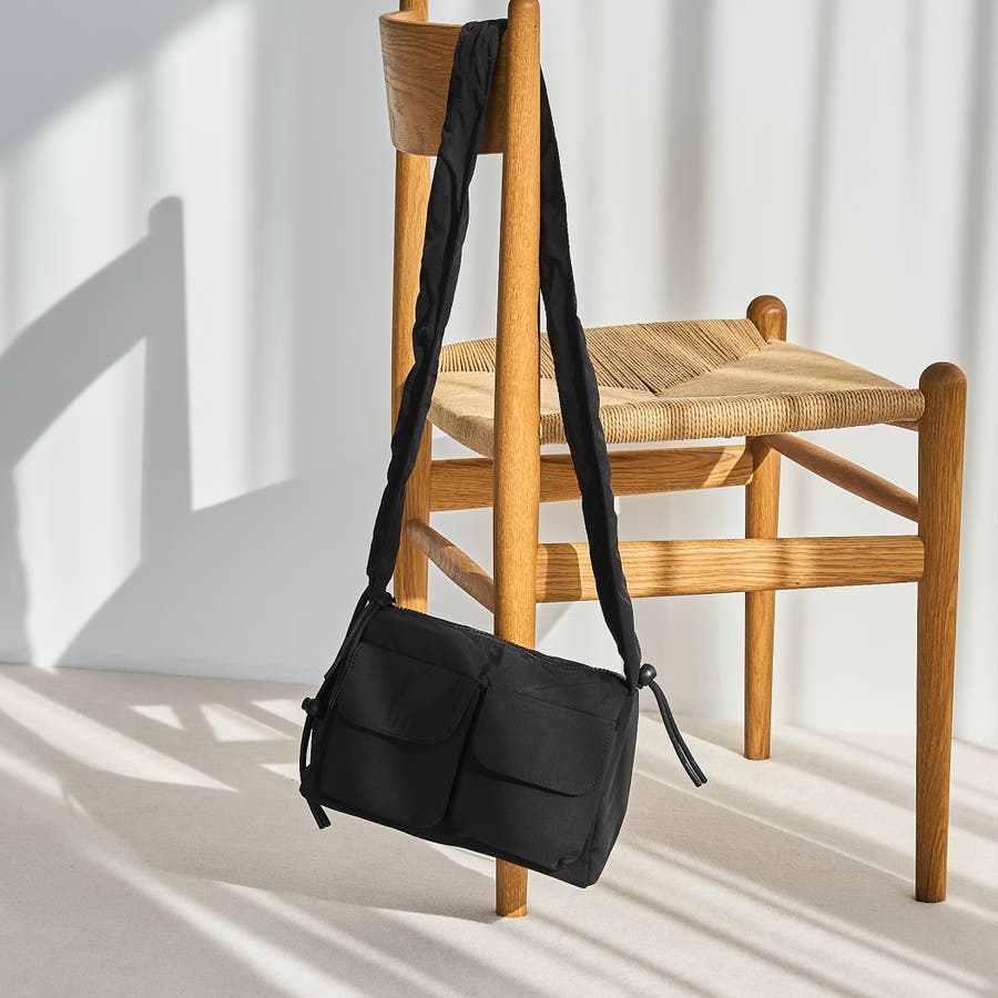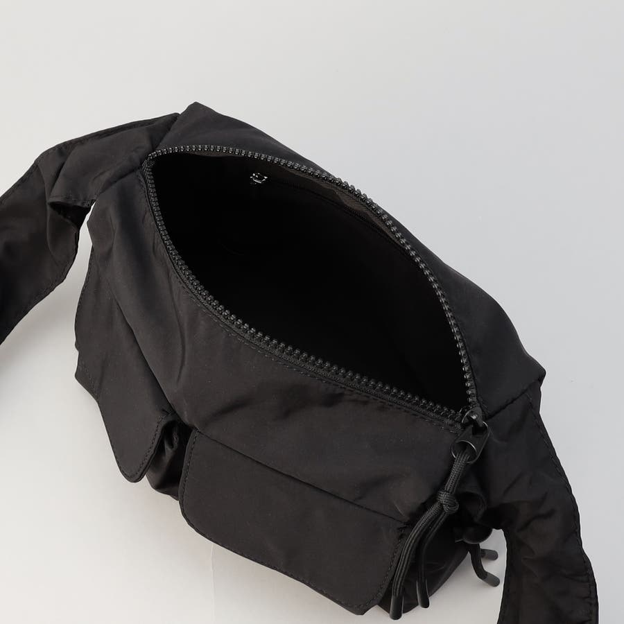 トレンド感あるダブルポケットデザインで、さらに今年顔に仕上げた三日月型ショルダーバッグ。