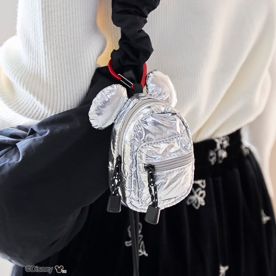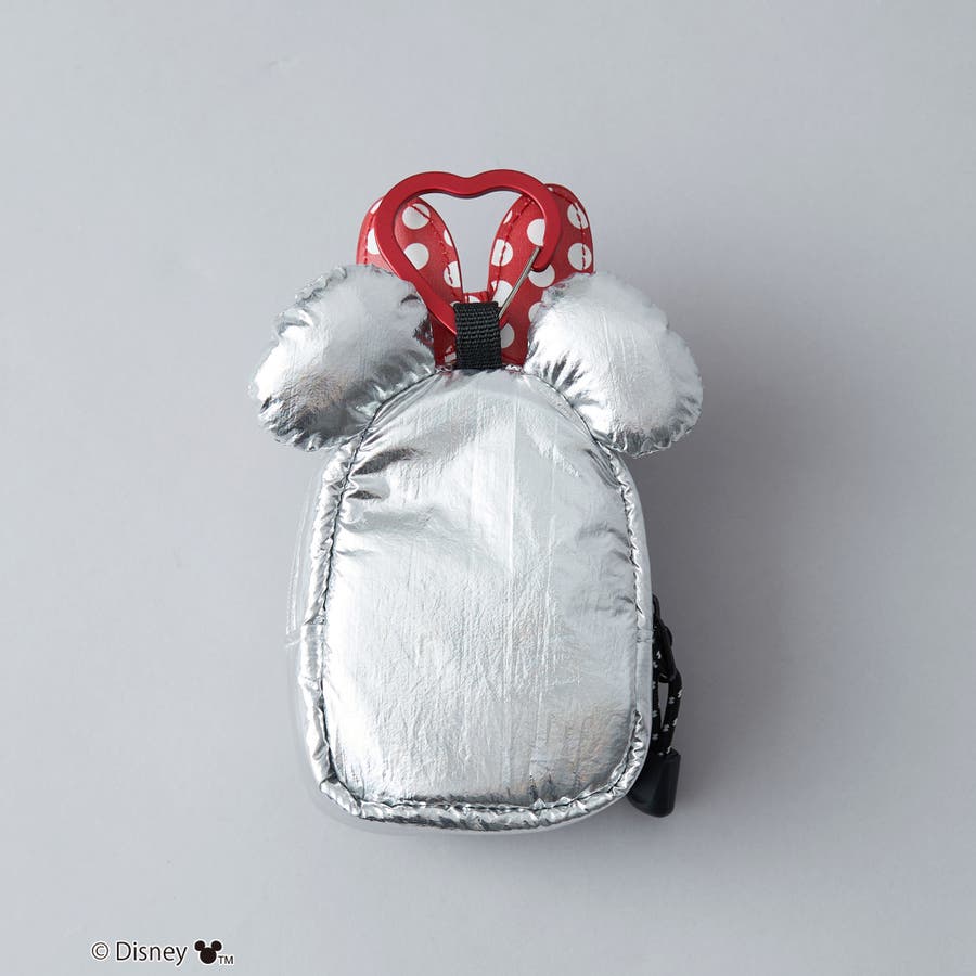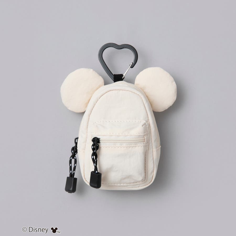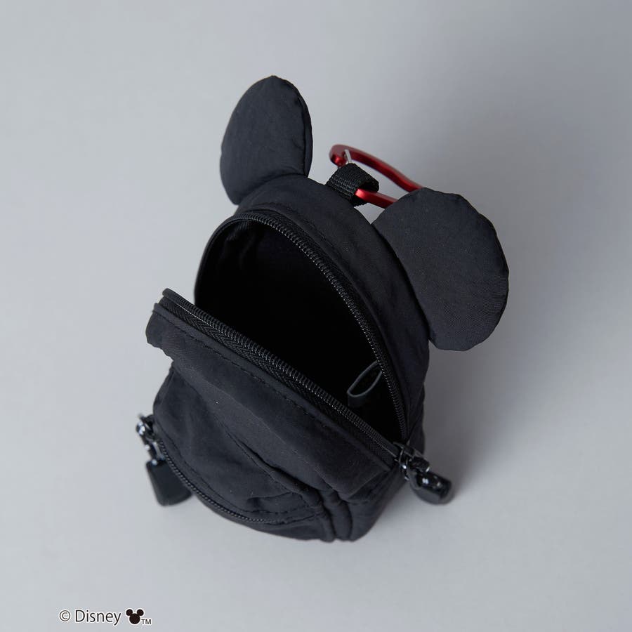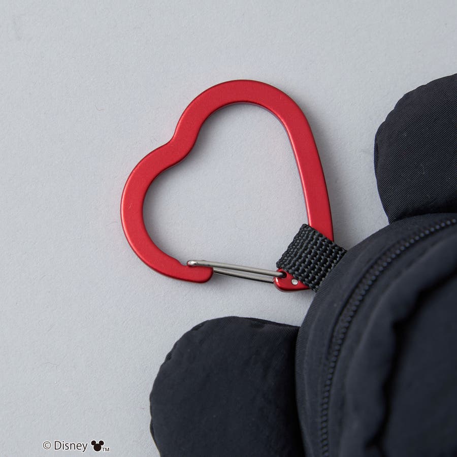 小物の収納に最適なサイズ感とキュートな「ミッキー」の耳モチーフが付いたミニポーチ。
