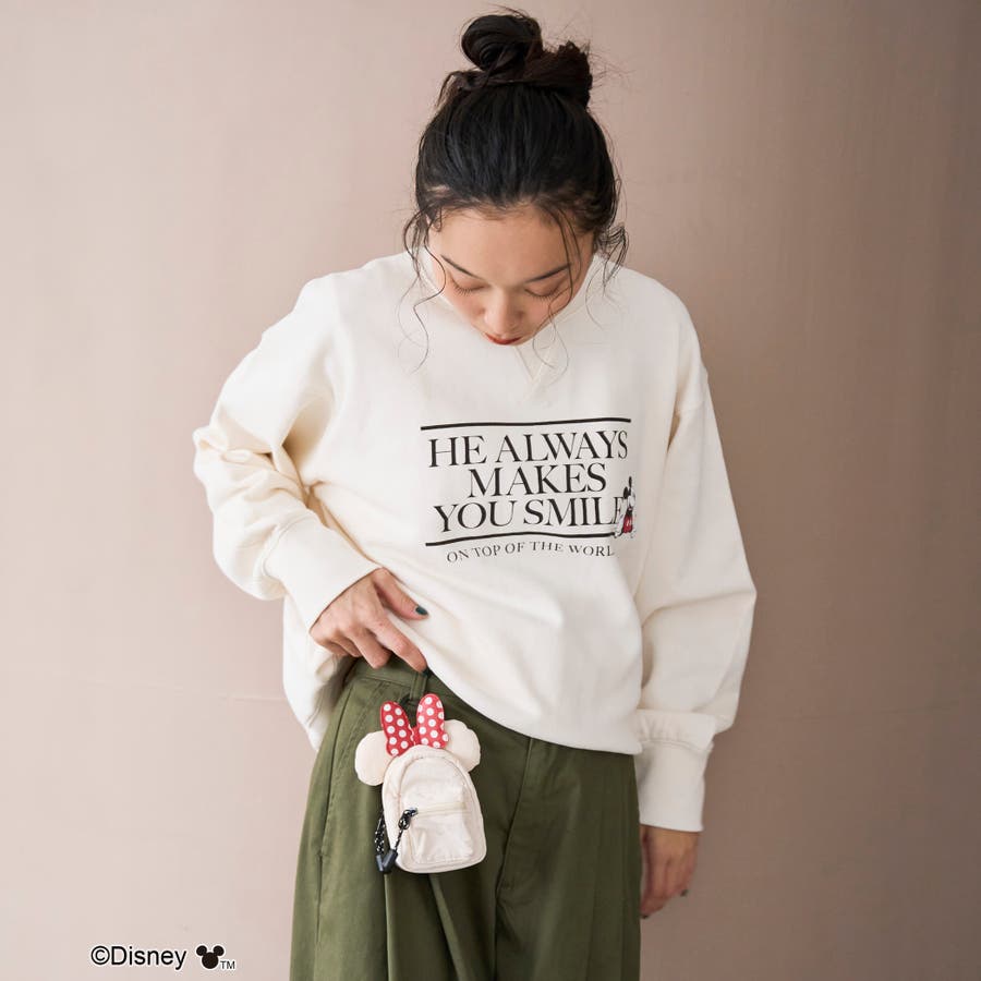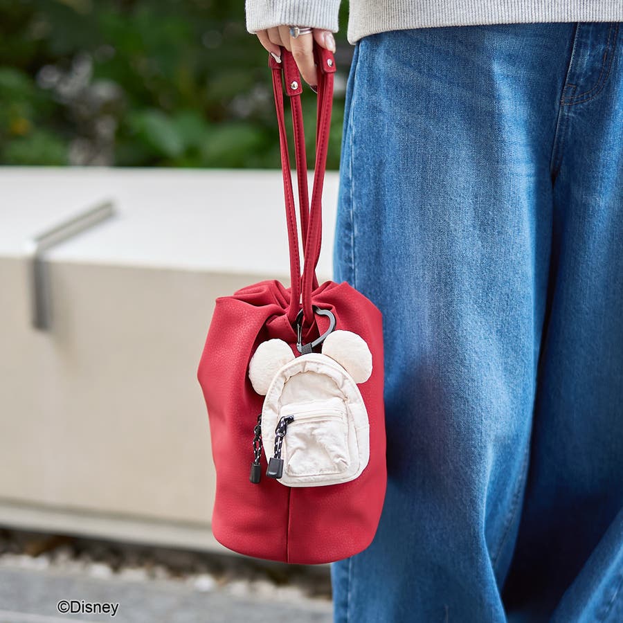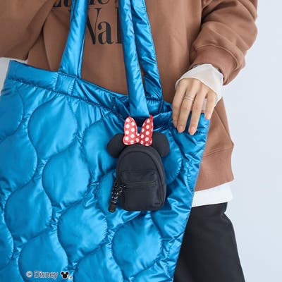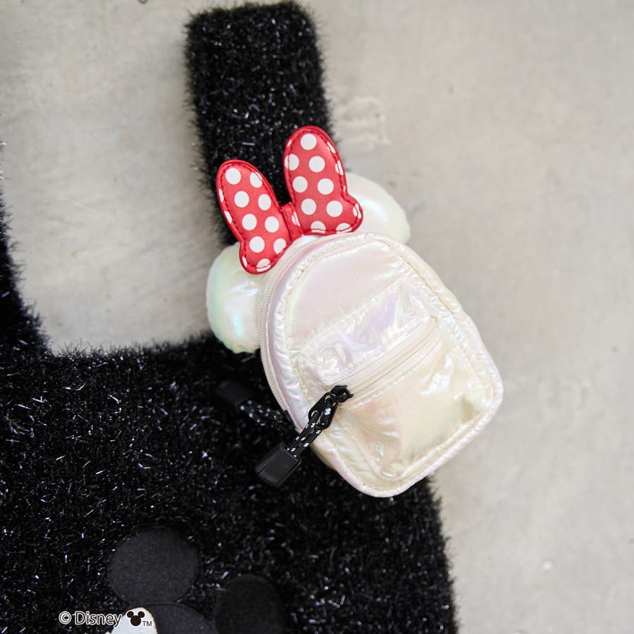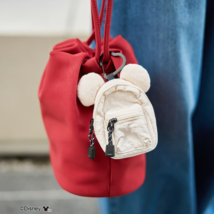小物の収納に最適なサイズ感とキュートな「ミッキー」の耳モチーフが付いたミニポーチ。