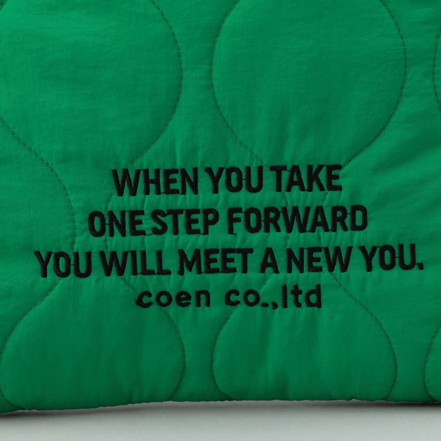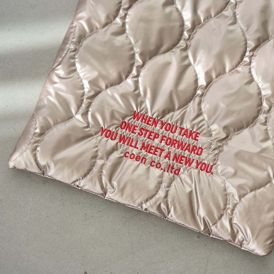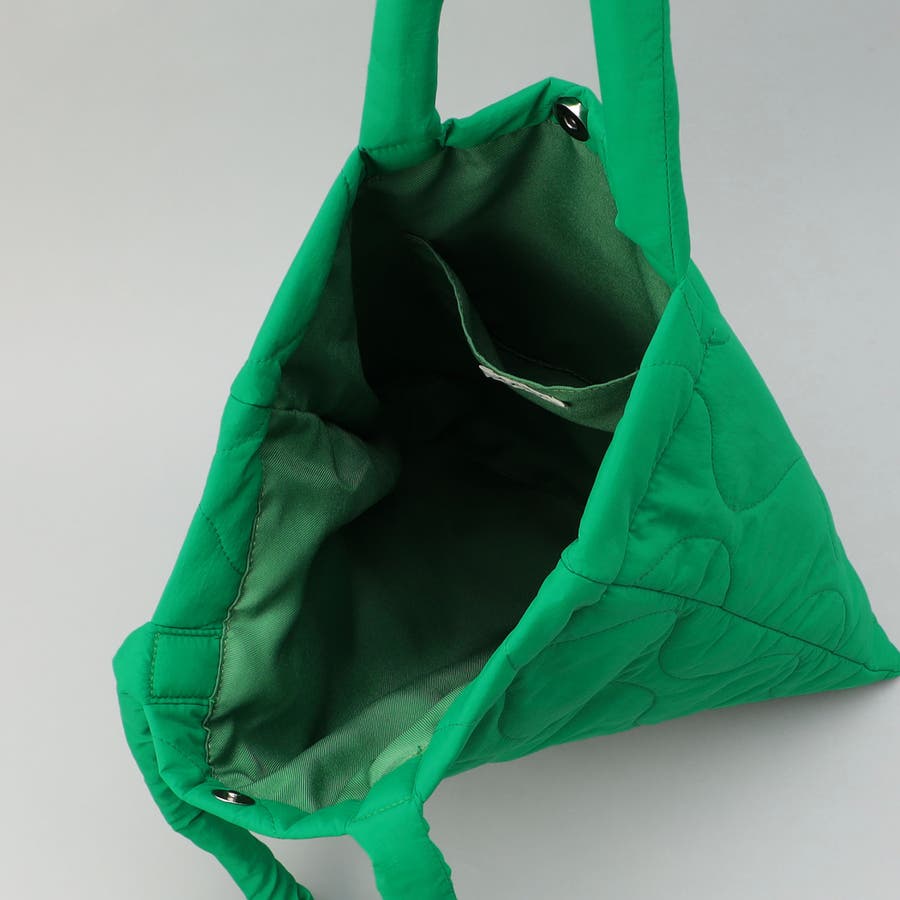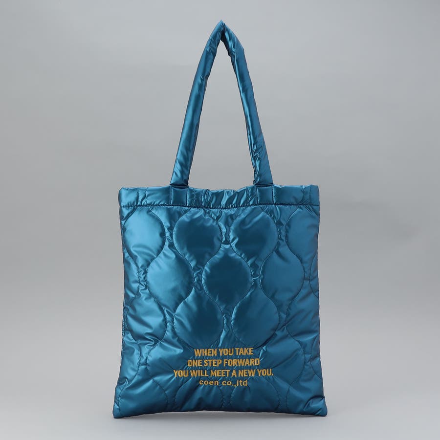 ロゴ刺繍でアクセントを添えたキルティングトートバッグ。