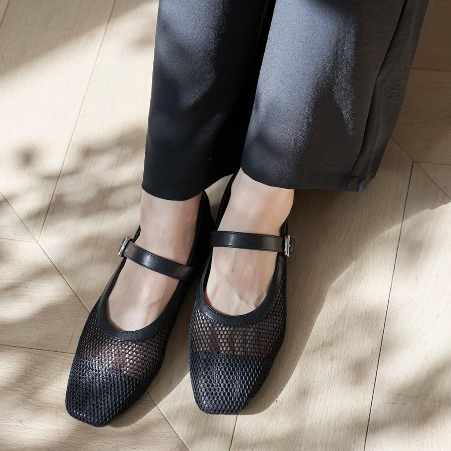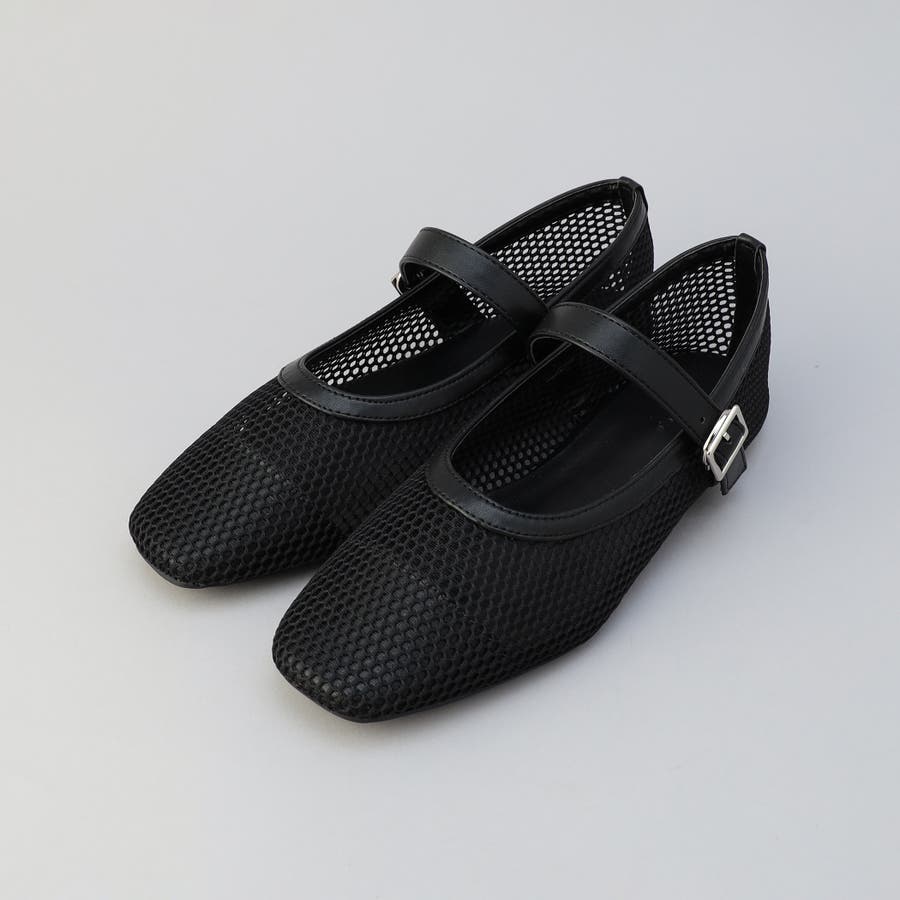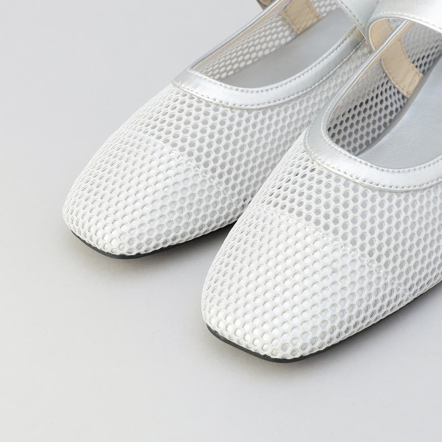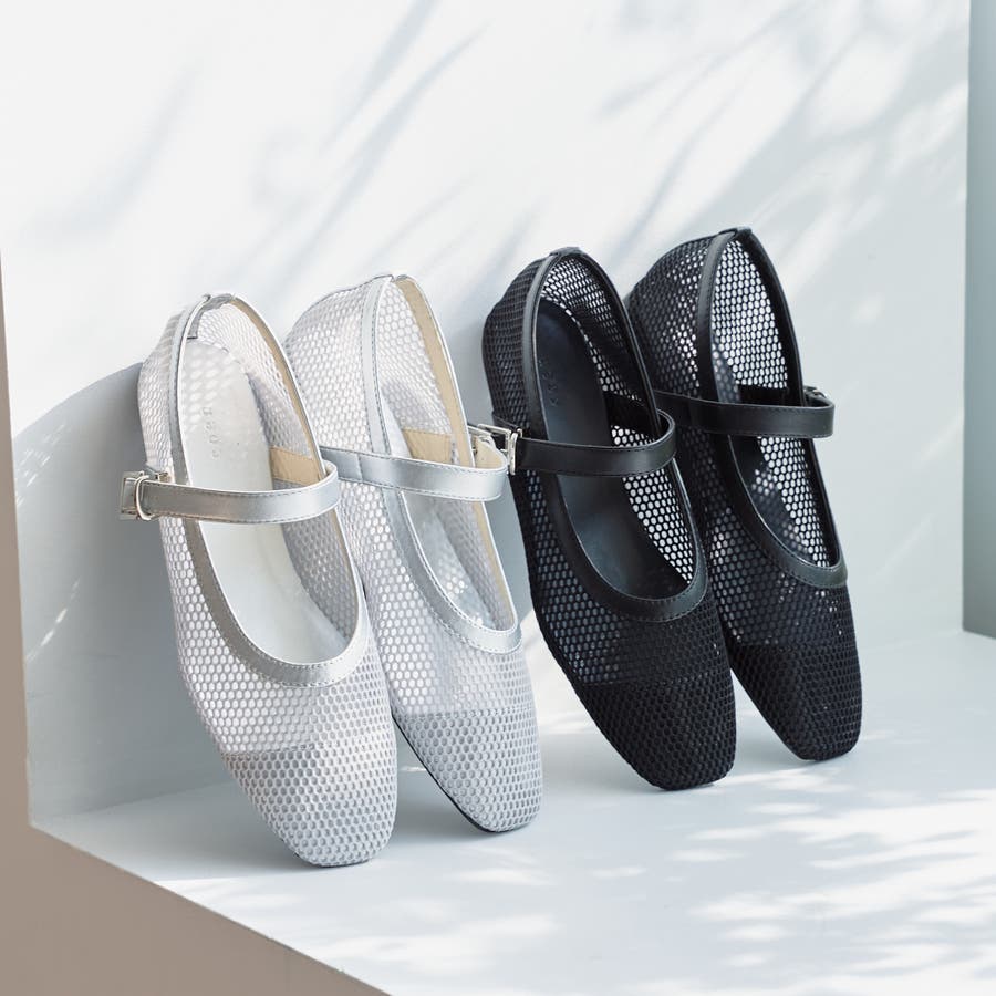 涼しげなメッシュ素材を使用した、トレンド感あふれるメリージェーンシューズ。