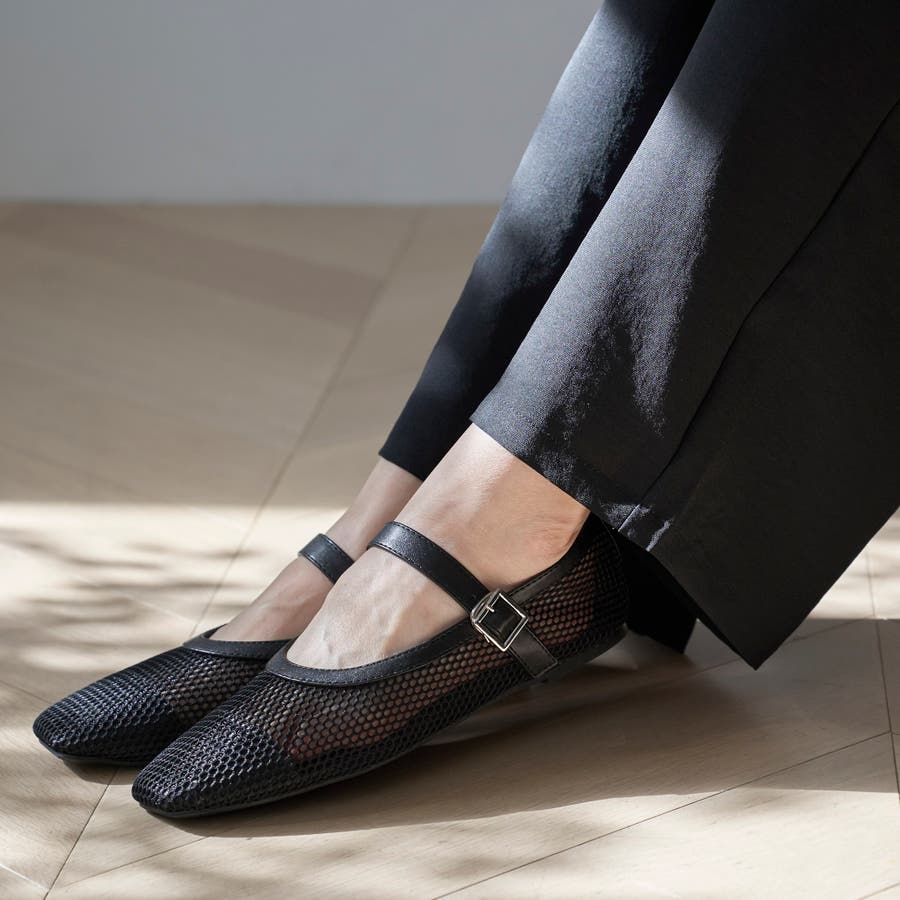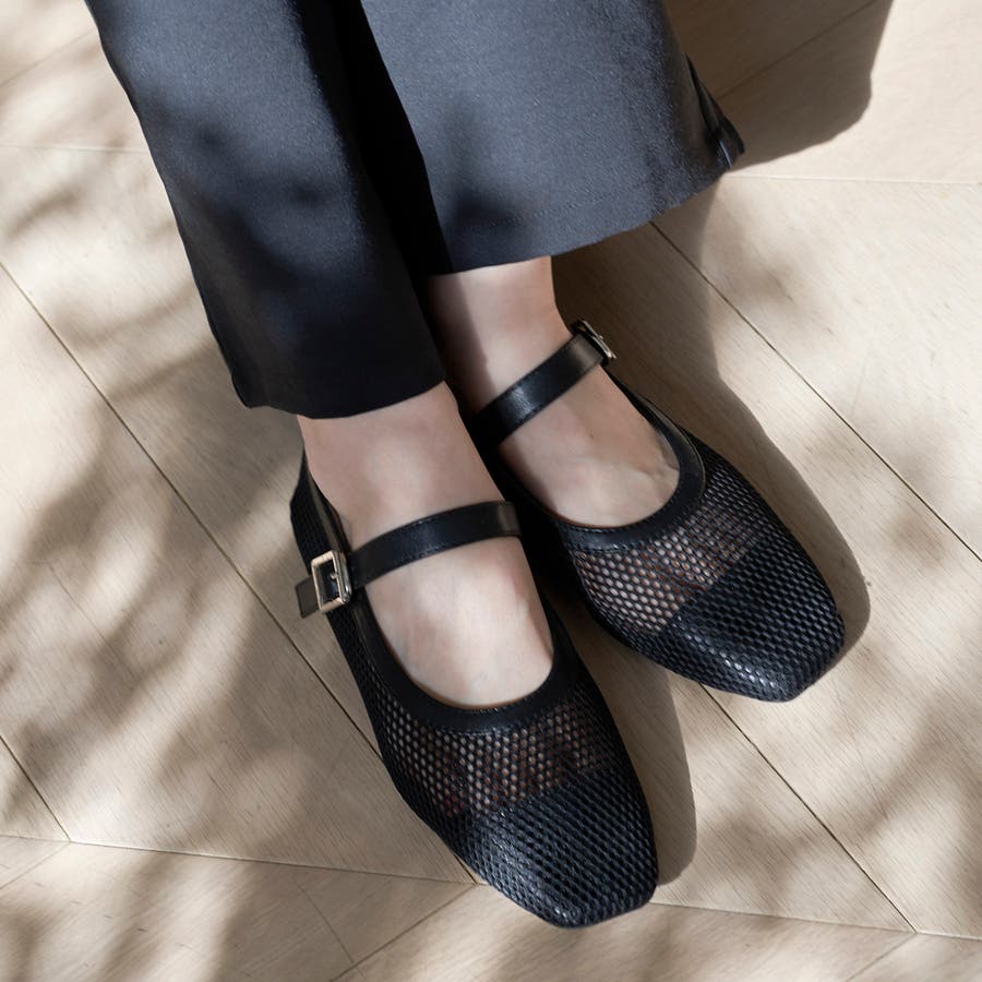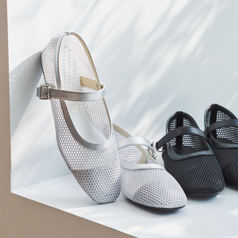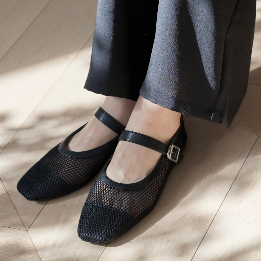 涼しげなメッシュ素材を使用した、トレンド感あふれるメリージェーンシューズ。