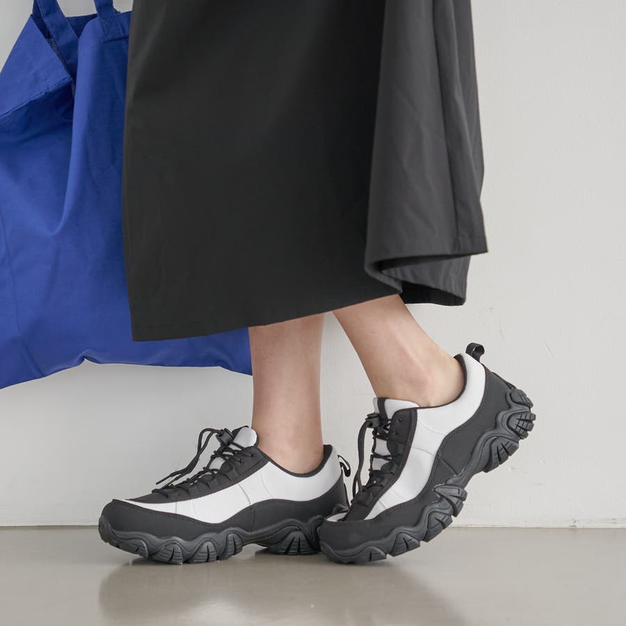 ミッドソールに波のような凹凸があり、足元を印象的に見せるスニーカー。