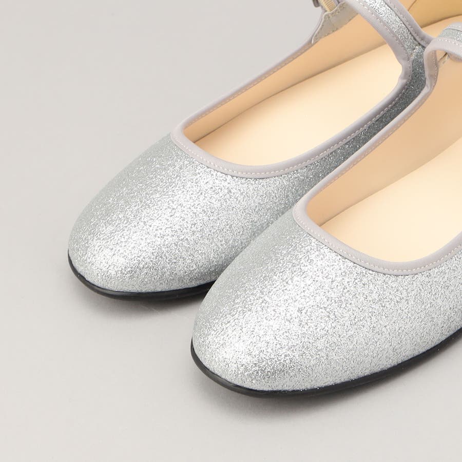 甲をしっかり支えるメリージェーンタイプのラウンドトゥパンプス。煌めくグリッターアッパーが足元をエレガントに引き立てます。フィット感調整が可能なベルト、踵まわりを深く覆う設計、後方に少し高さを持たせたフラットソールなど、歩きやすさにも配慮。キレイめはもちろん、デニムスタイルに合わせても可愛い一足です。