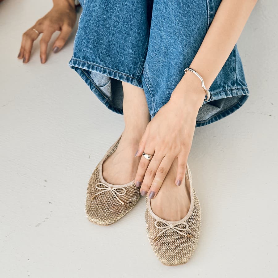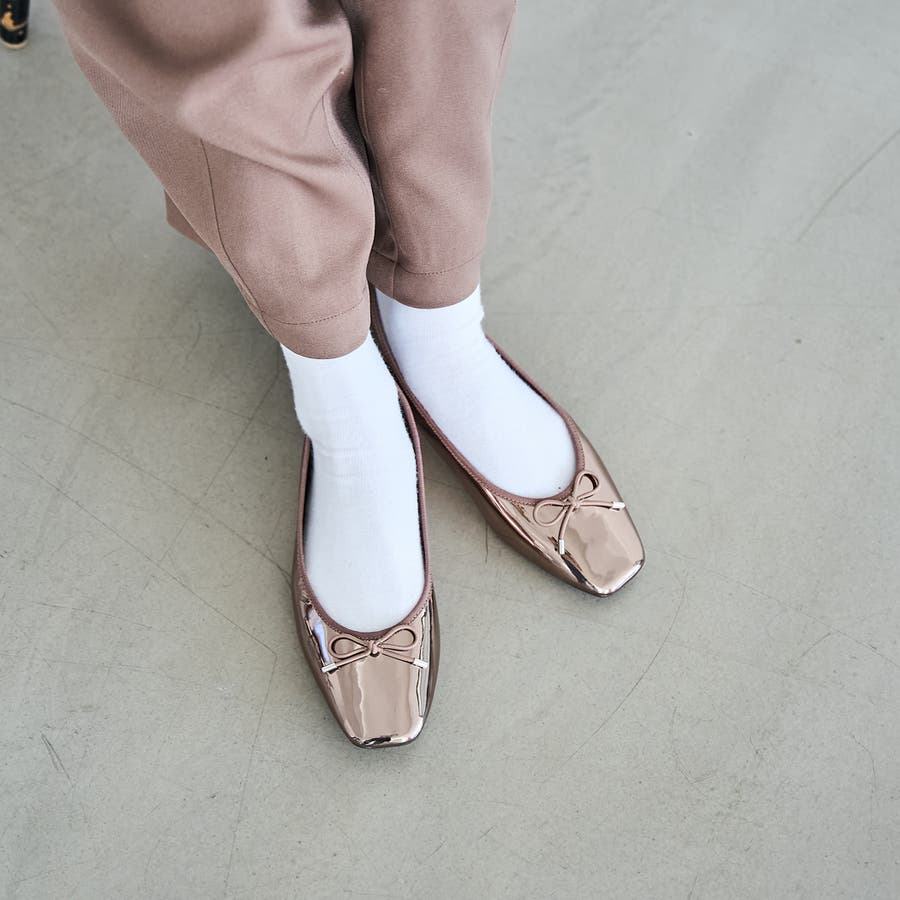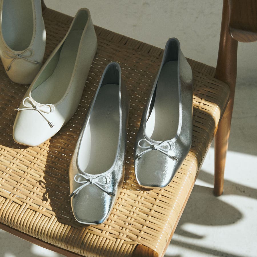 ベーシックながらも、さりげない程度のスクエアトゥでどんなスタイルにも対応するバレエシューズです。