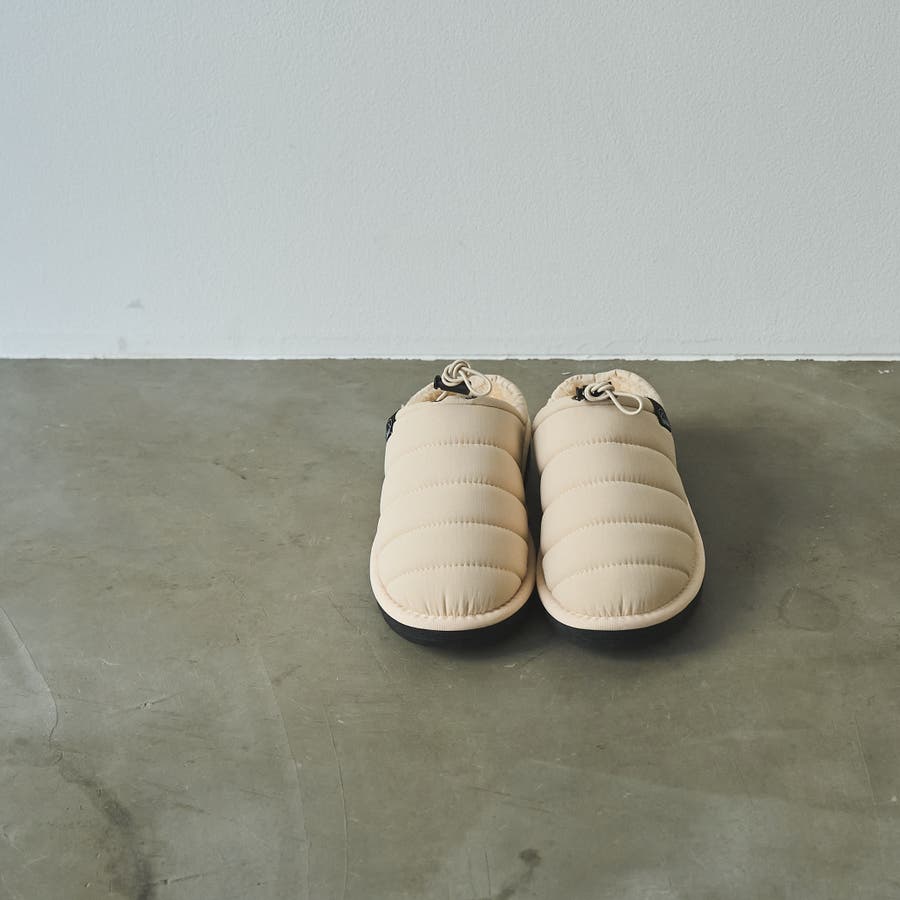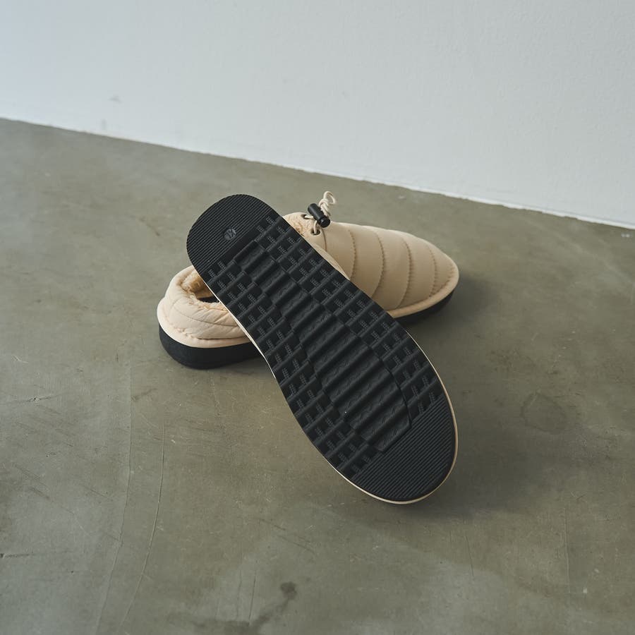 アッパーをキルト仕立てにすることで、ふっくらとしたボリューム感を持たせたモックシューズです。