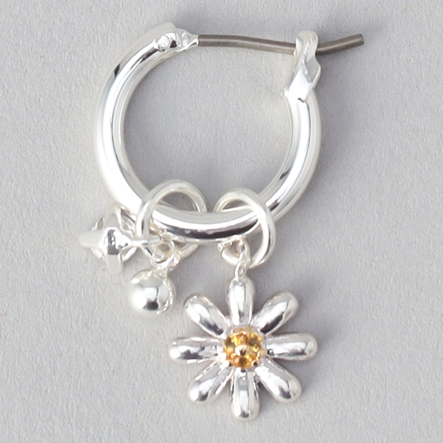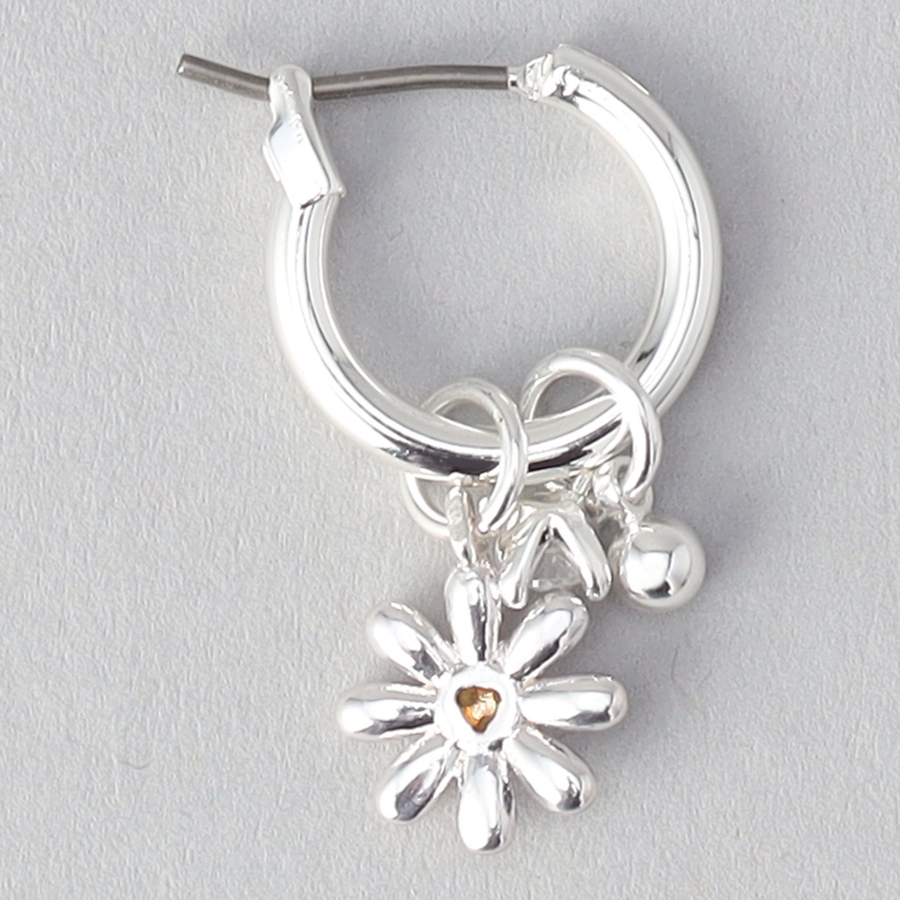 フープ部分にフラワーモチーフとキュービックジルコニアがきらめく、華やかなピアス。