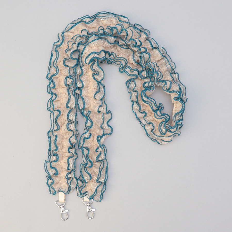 チュールのエアリー感やフリルのボリュームがポイントのストラップ。