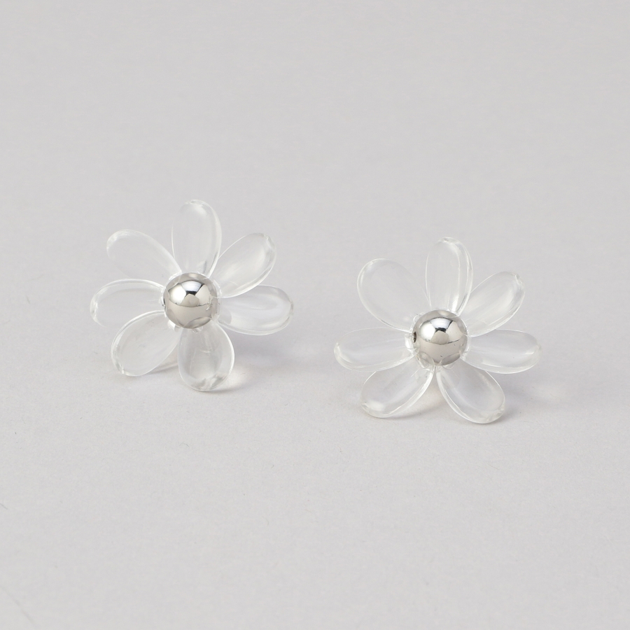 顔まわりを涼やかに映し出す、フラワーモチーフのピアス。