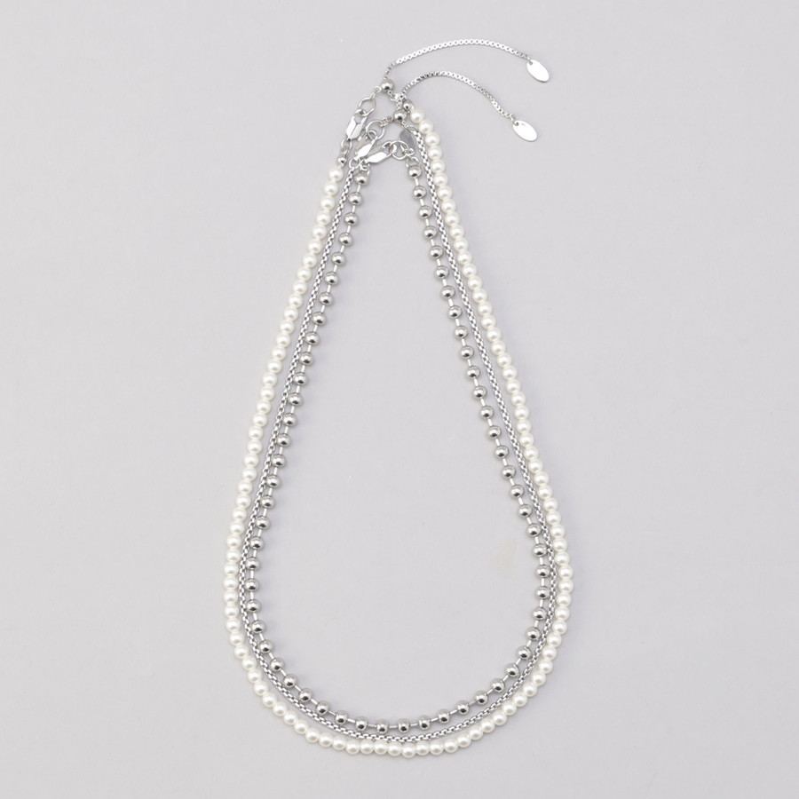 フェイクパール&ボールチェーン3連ネックレス
