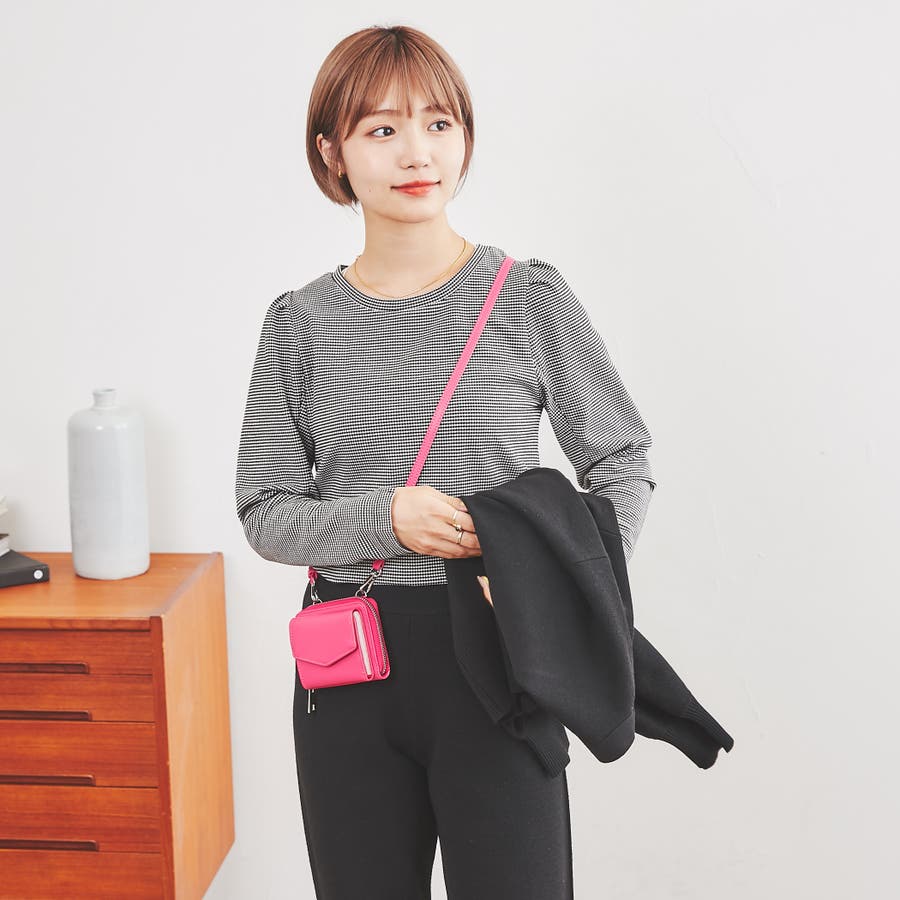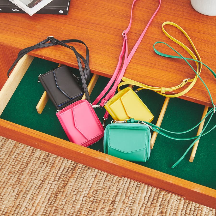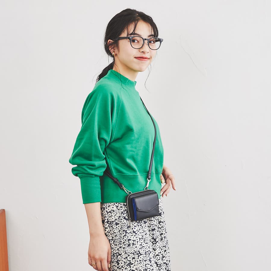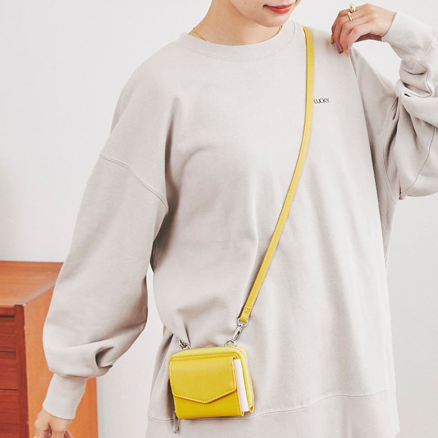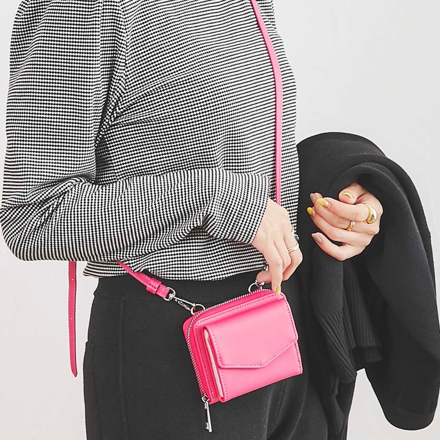 ショルダーを取り外すとお財布としても使えるので、その時のスタイリングによって切り替えてください。