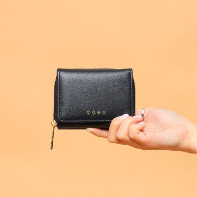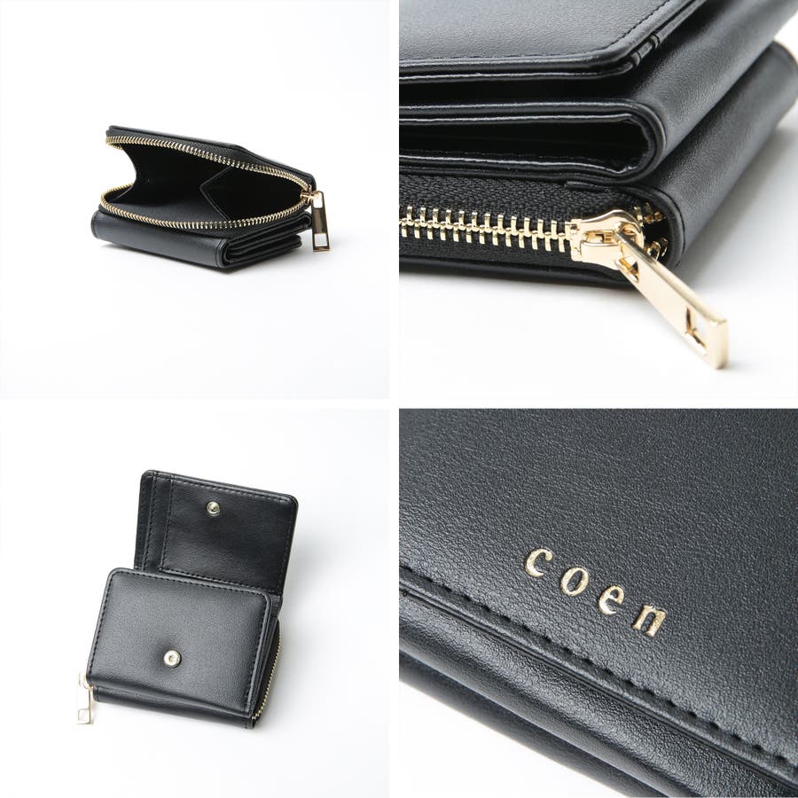 ベーシックなcoenロゴが入った、三つ折り財布。