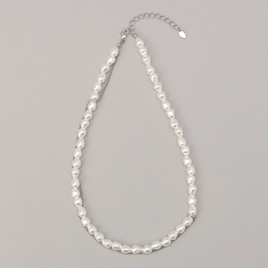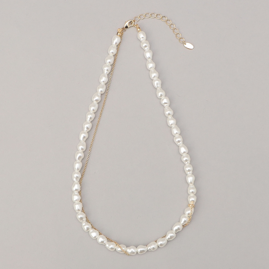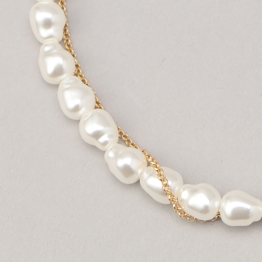 繊細なアシンメトリーチェーンをあしらった樹脂パールネックレス。