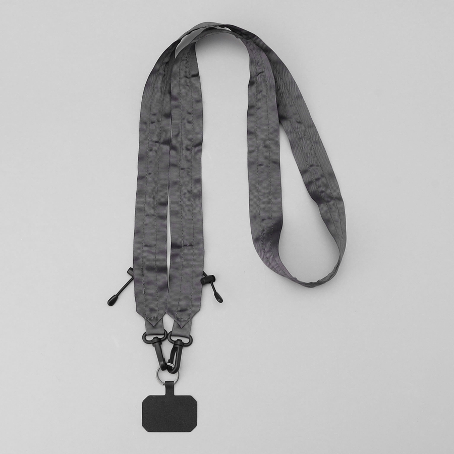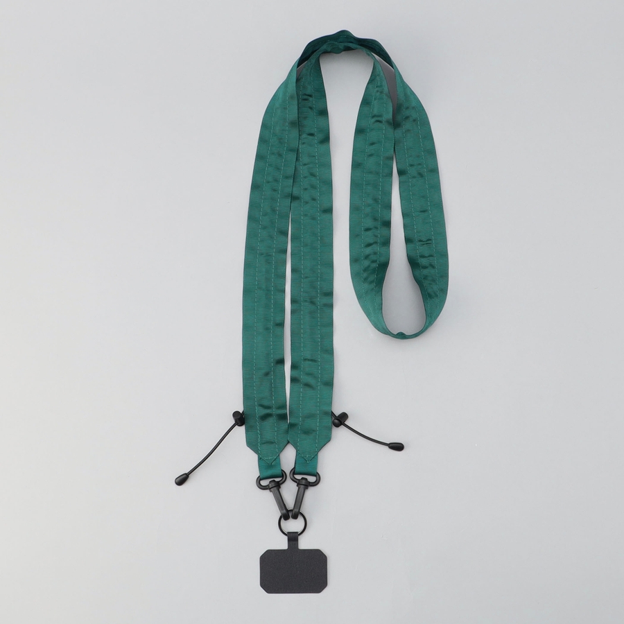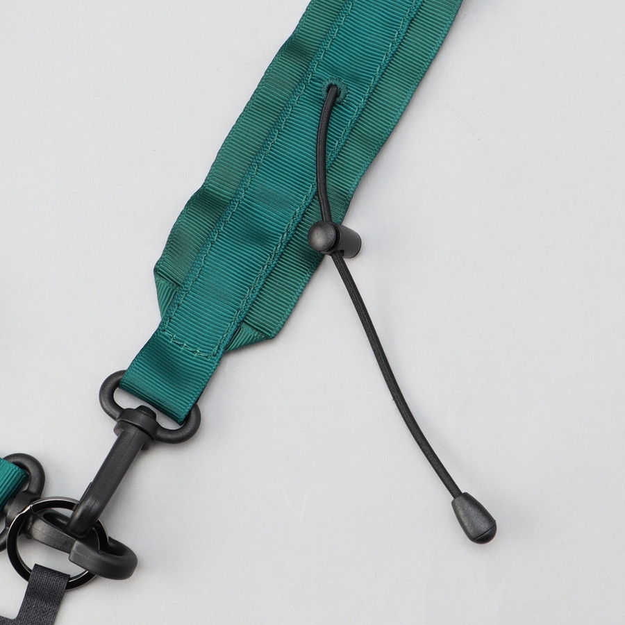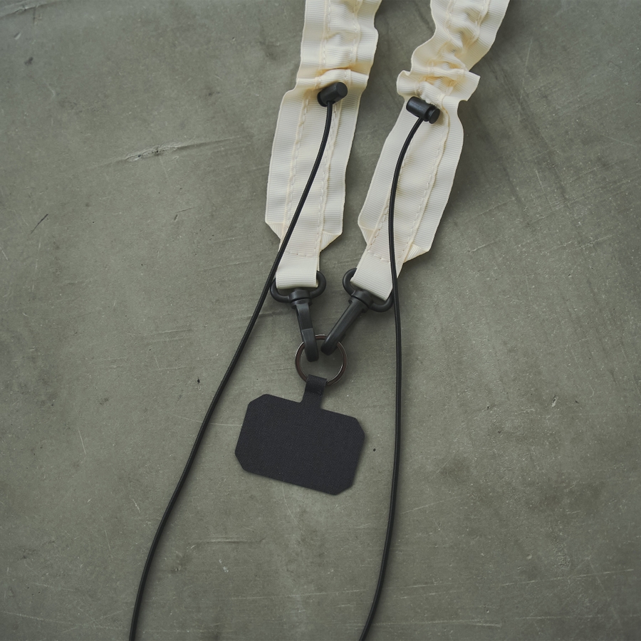 タフで軽やかなグログランテープで仕上げたストラップ。