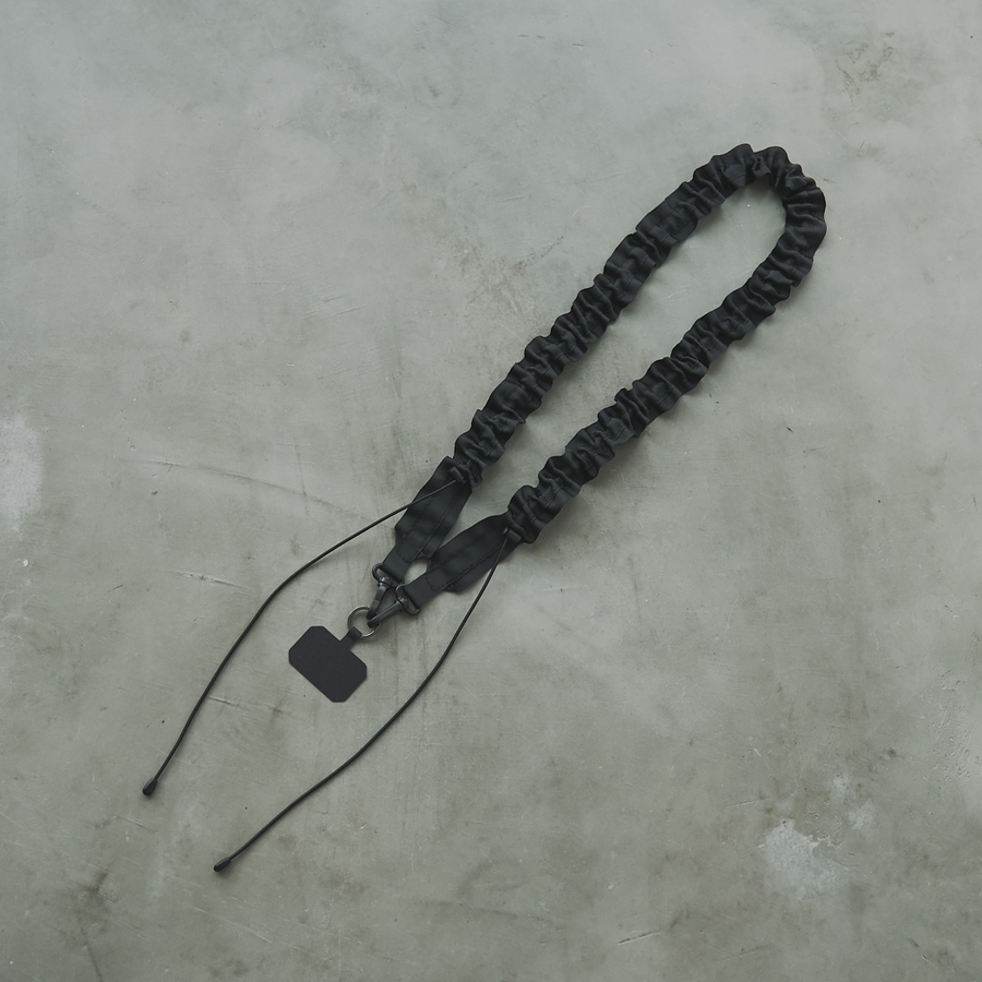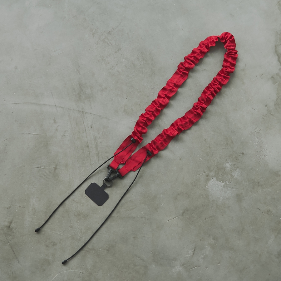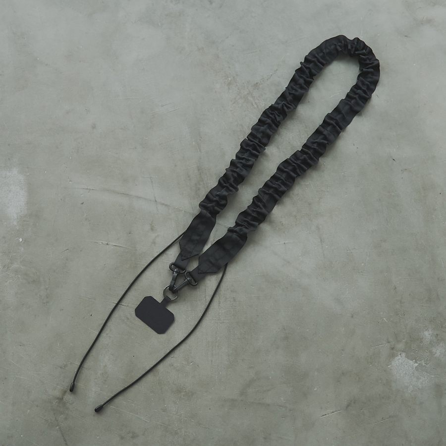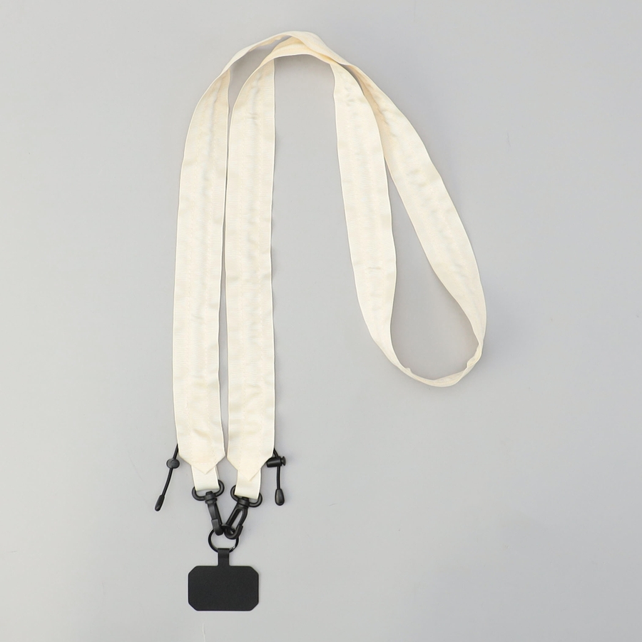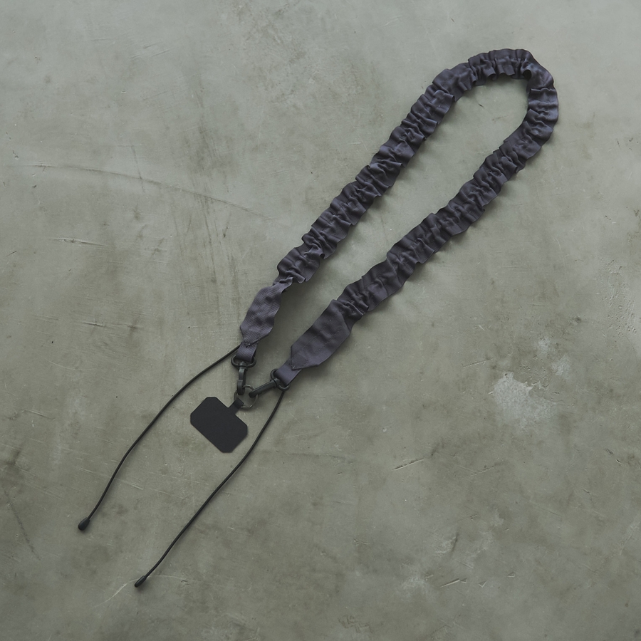 タフで軽やかなグログランテープで仕上げたストラップ。