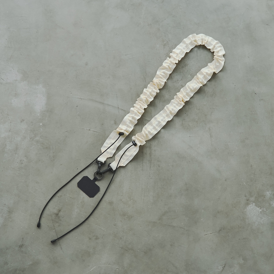 ドローコードで長さ・フリル具合が調整できるストラップ