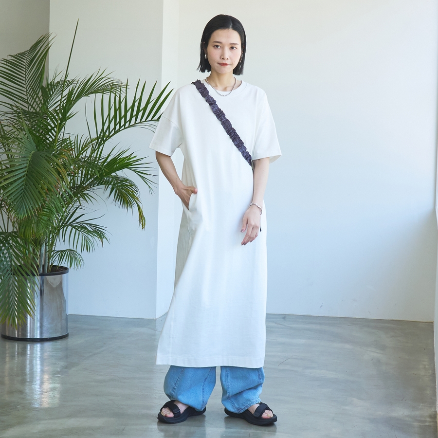 ドローコードを調整すると、くしゅっとフリルのようなシルエットにもアレンジ可能。