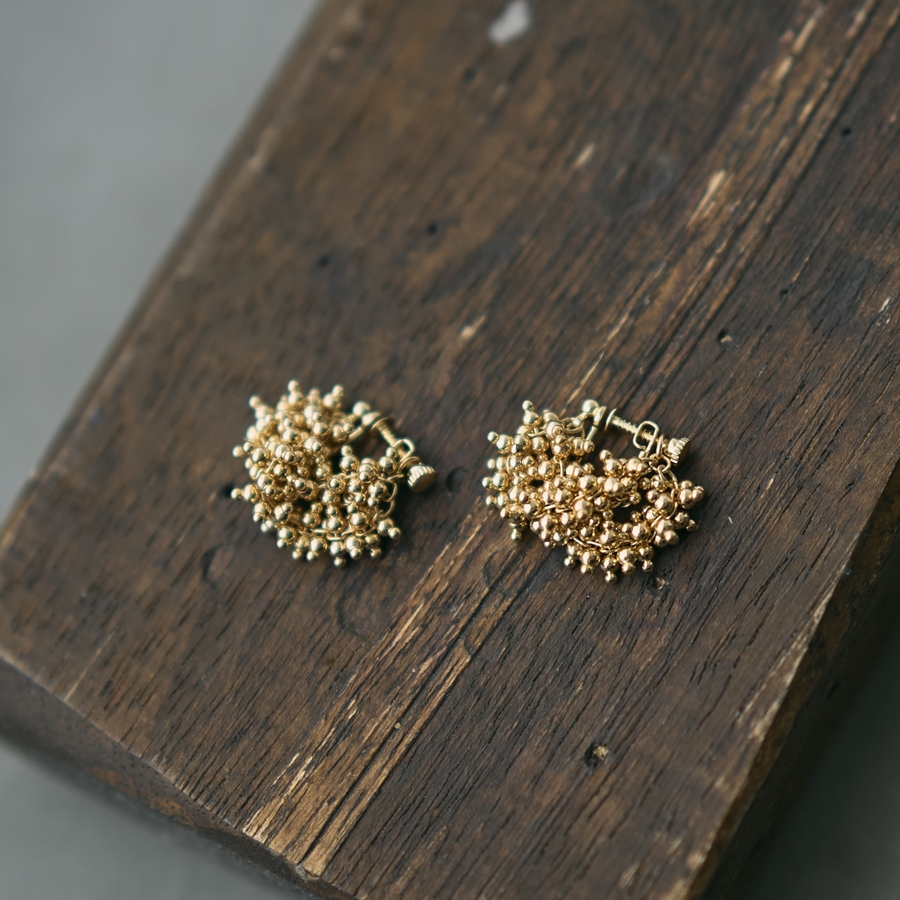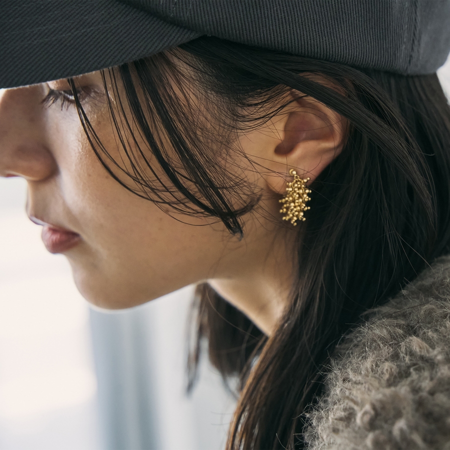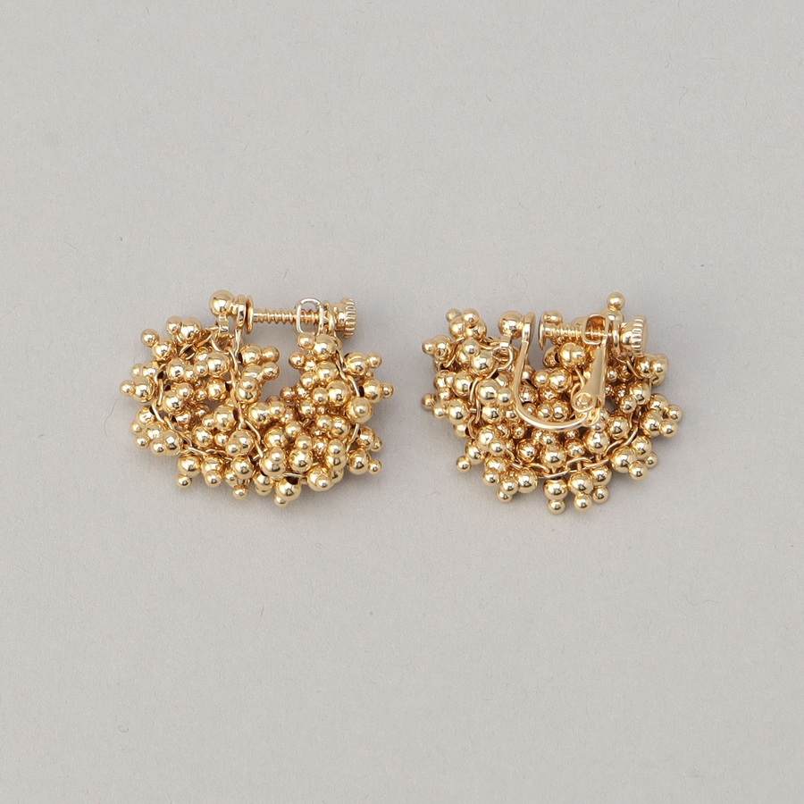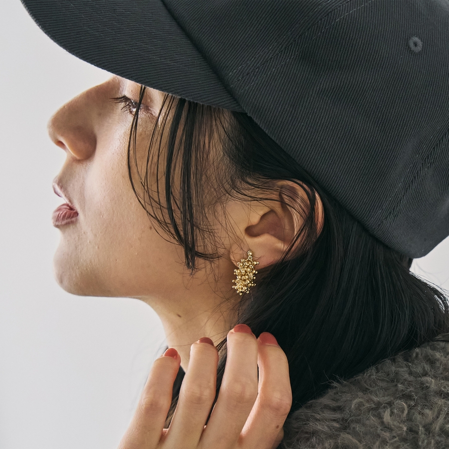 たっぷりのツブツブモチーフをあしらい、ボリュームのあるシルエットを作り出したイヤリング。