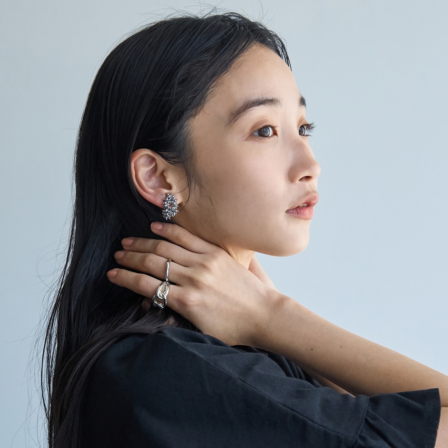 メタリックな光沢感も印象的で、耳元を華やかに飾ります。