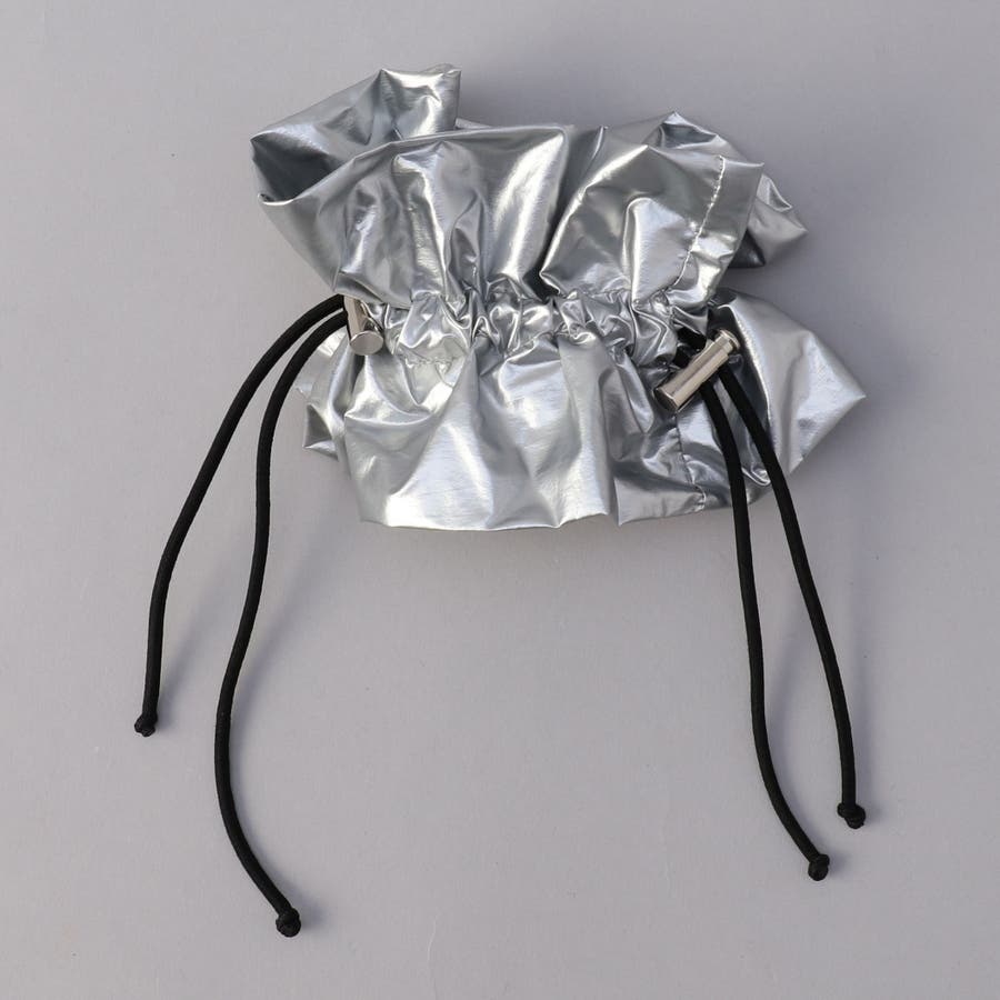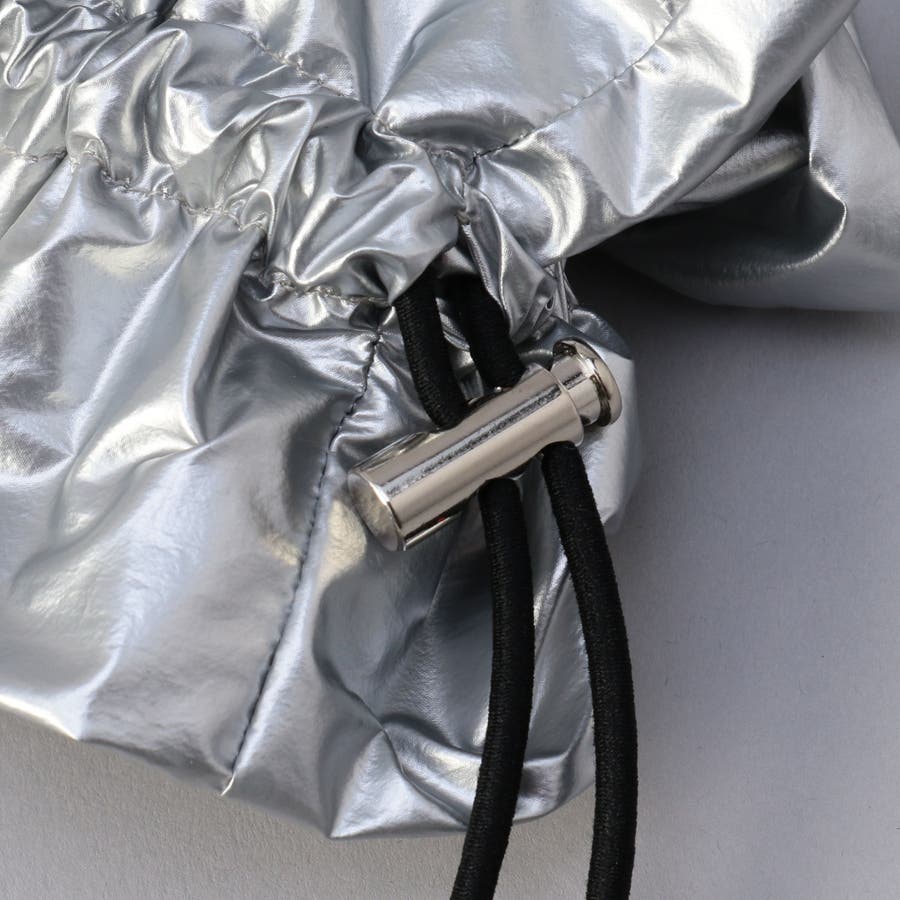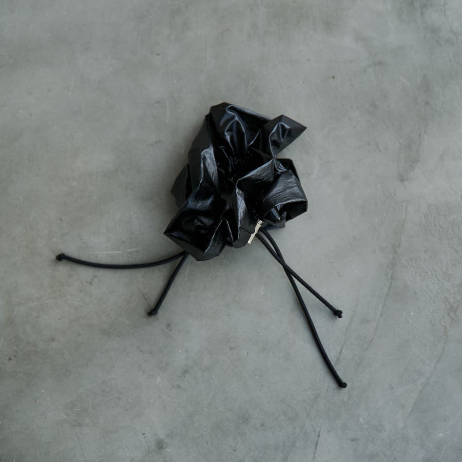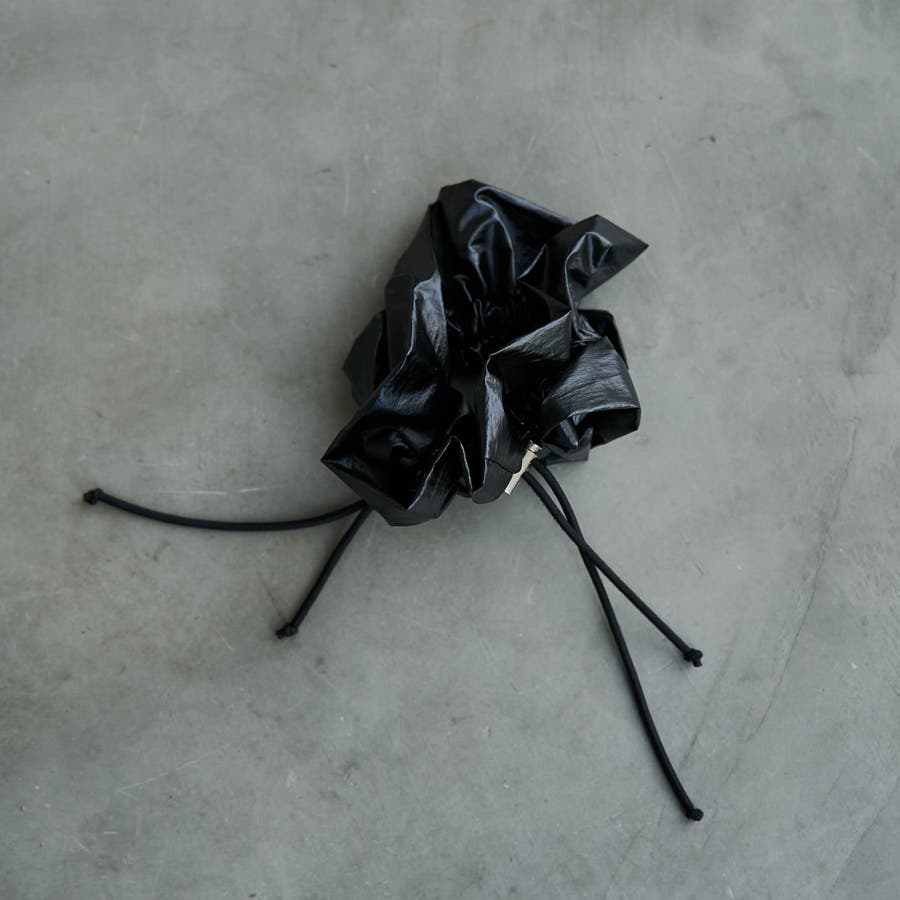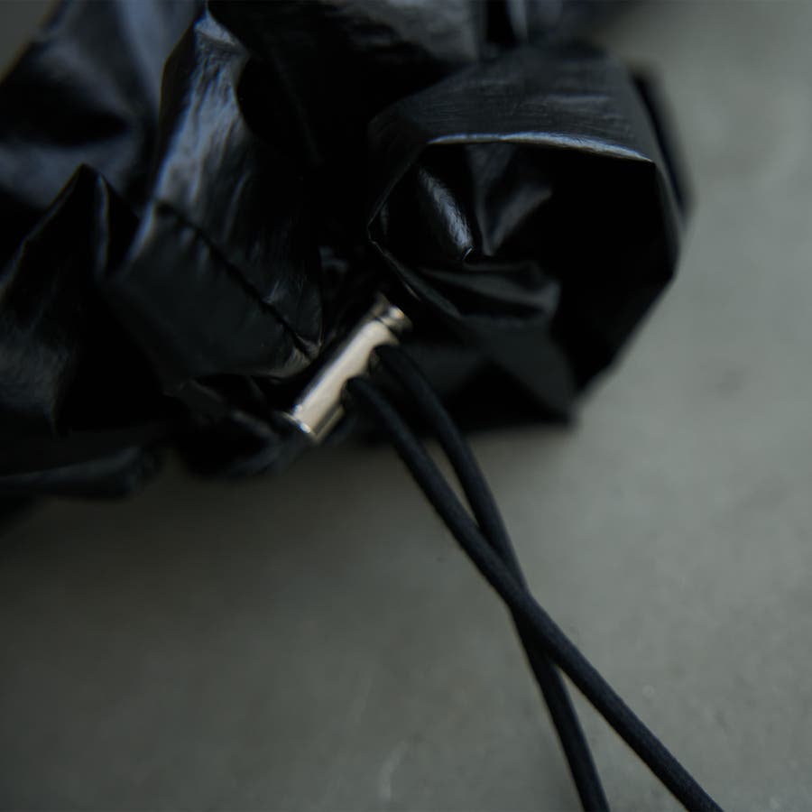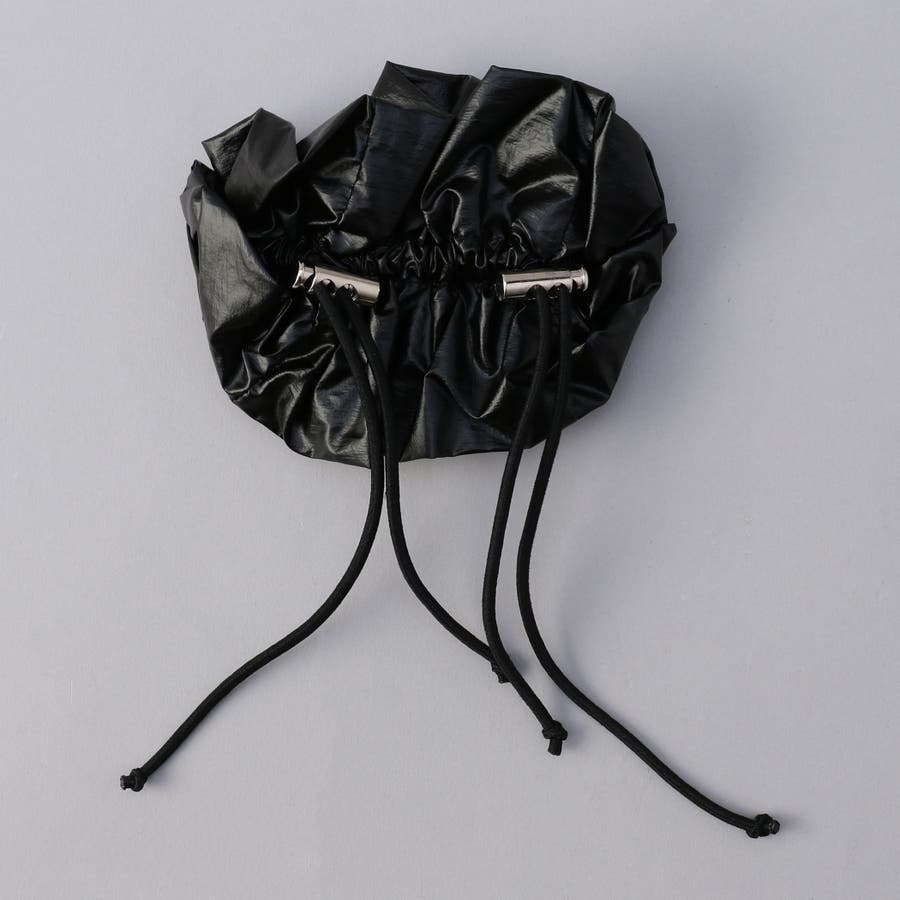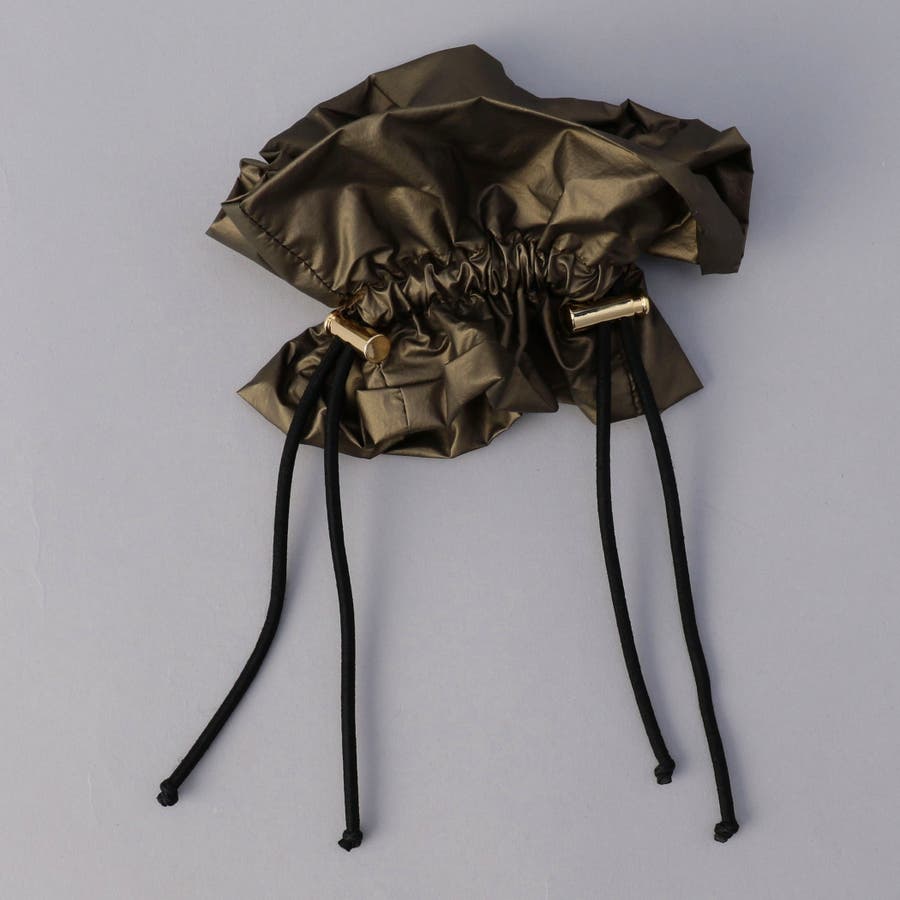 光沢感とドロストデザインでトレンド感をプラスし、甘さを抑えたシュシュ。