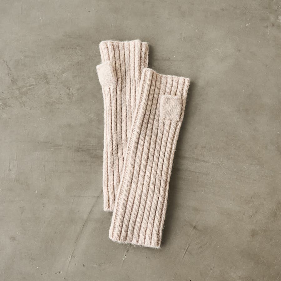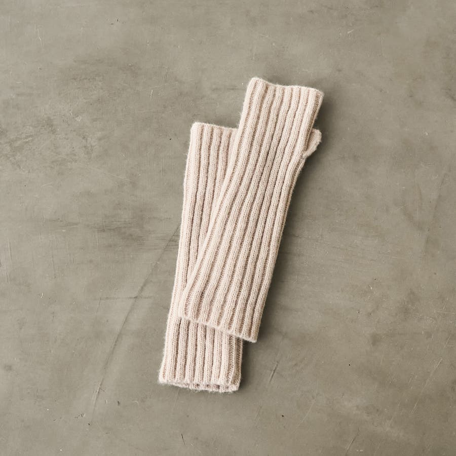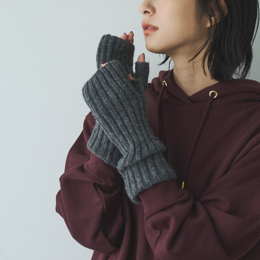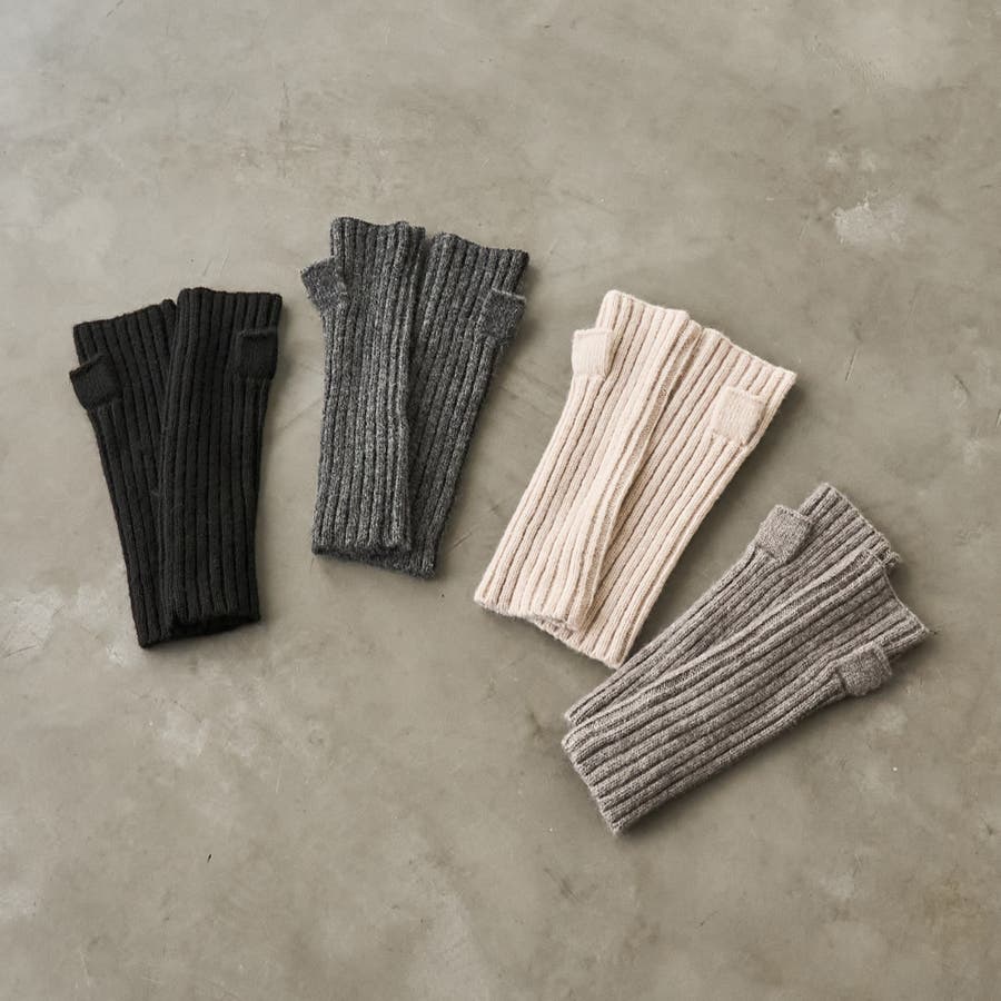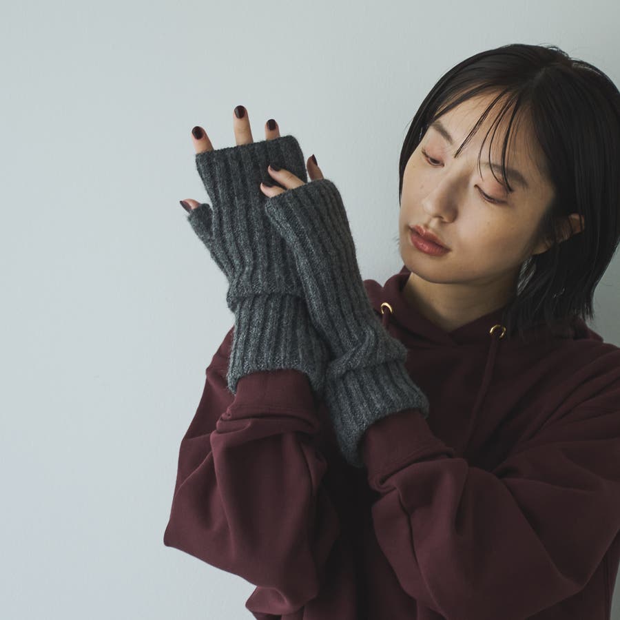 リブ編みならではのフィット感と縦ラインの凹凸で表情が加わったアームウォーマー。