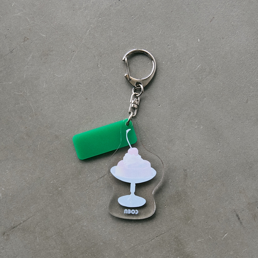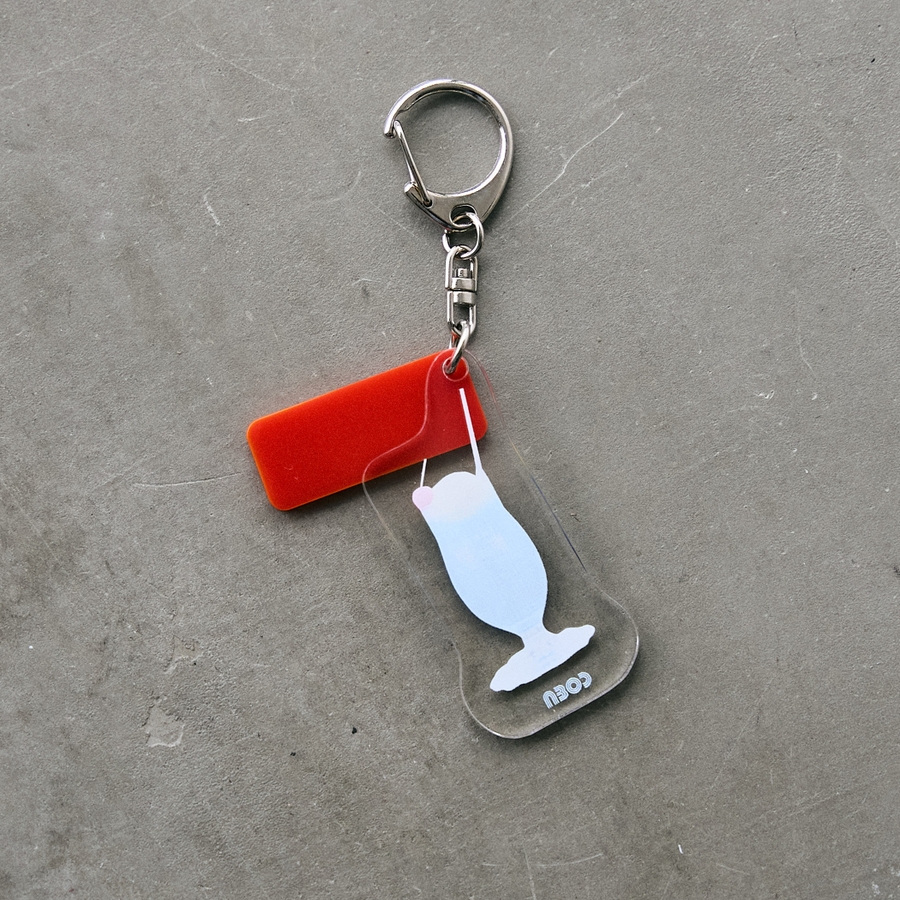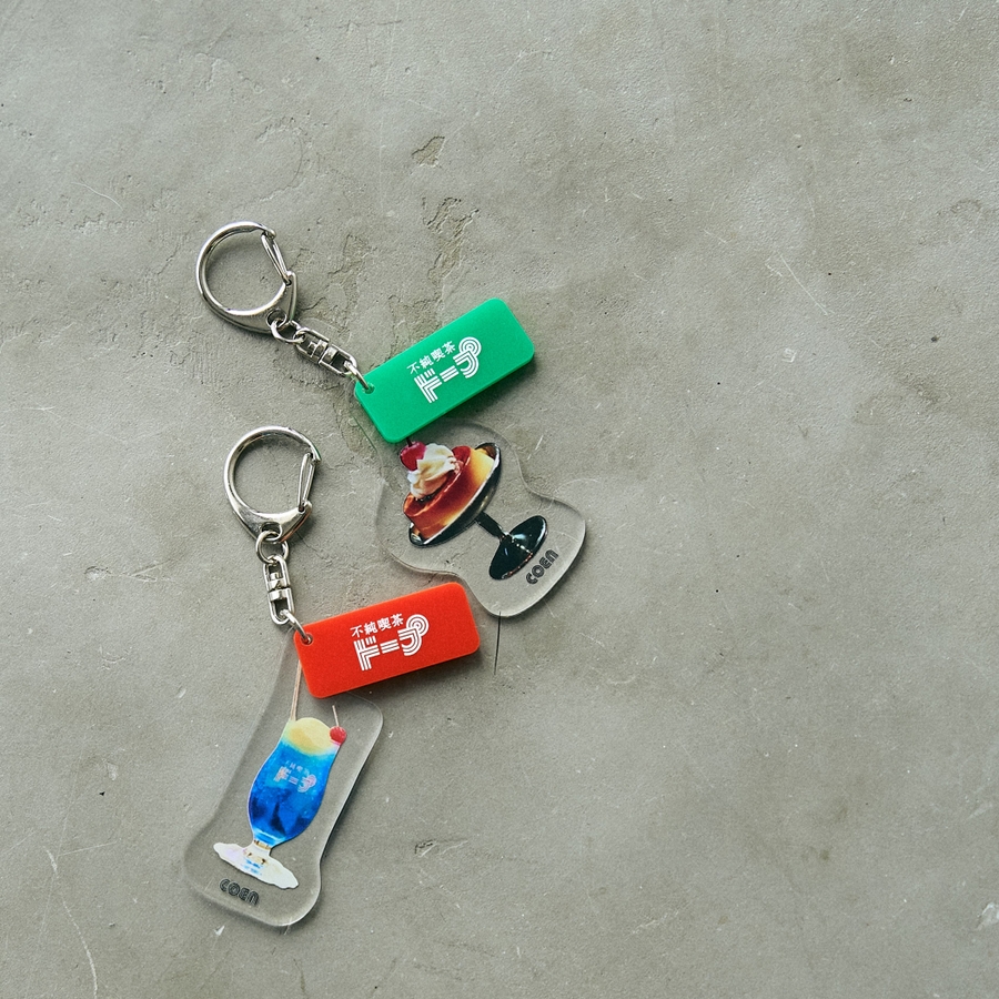 「プリン・ア・ラ・モード」と「クリームソーダ」の型でデザインしたキーホルダー。