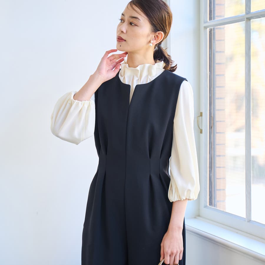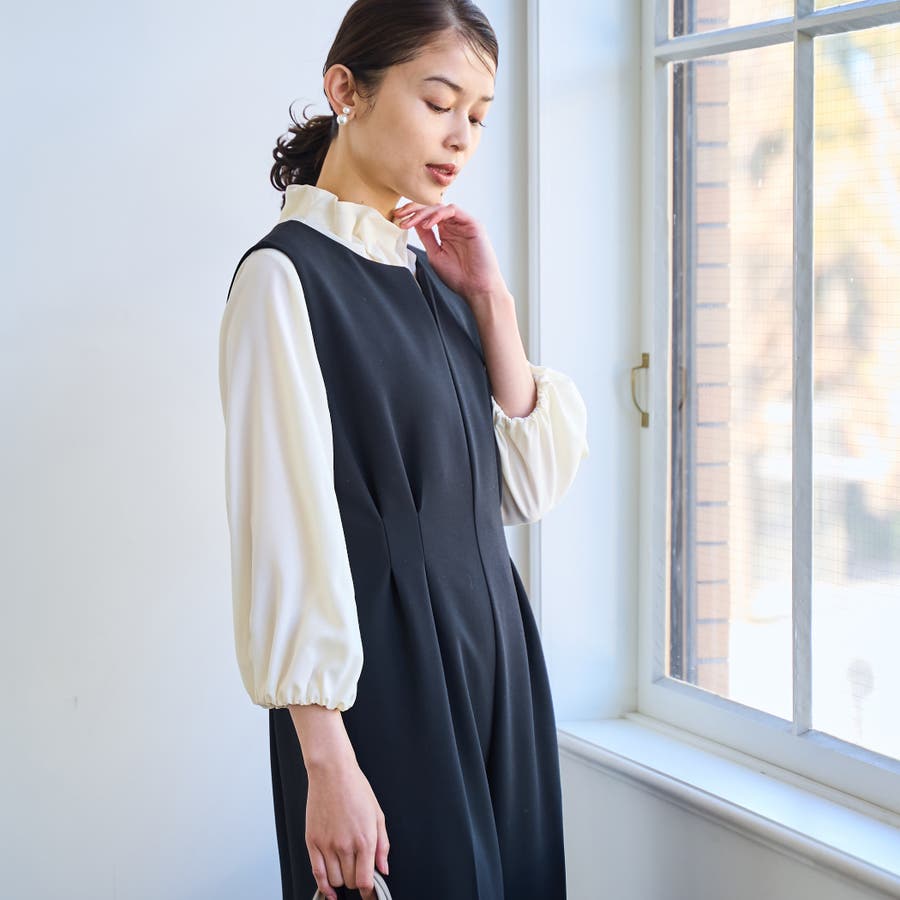 程よいボリュームのフリルネックがポイント。