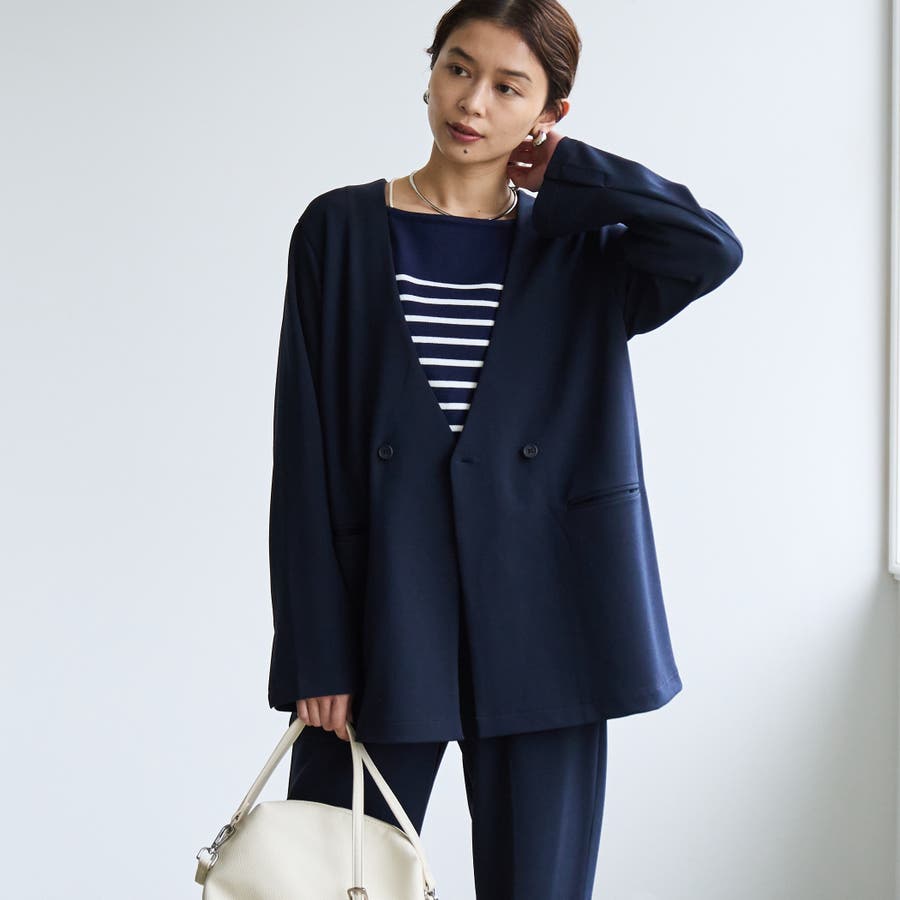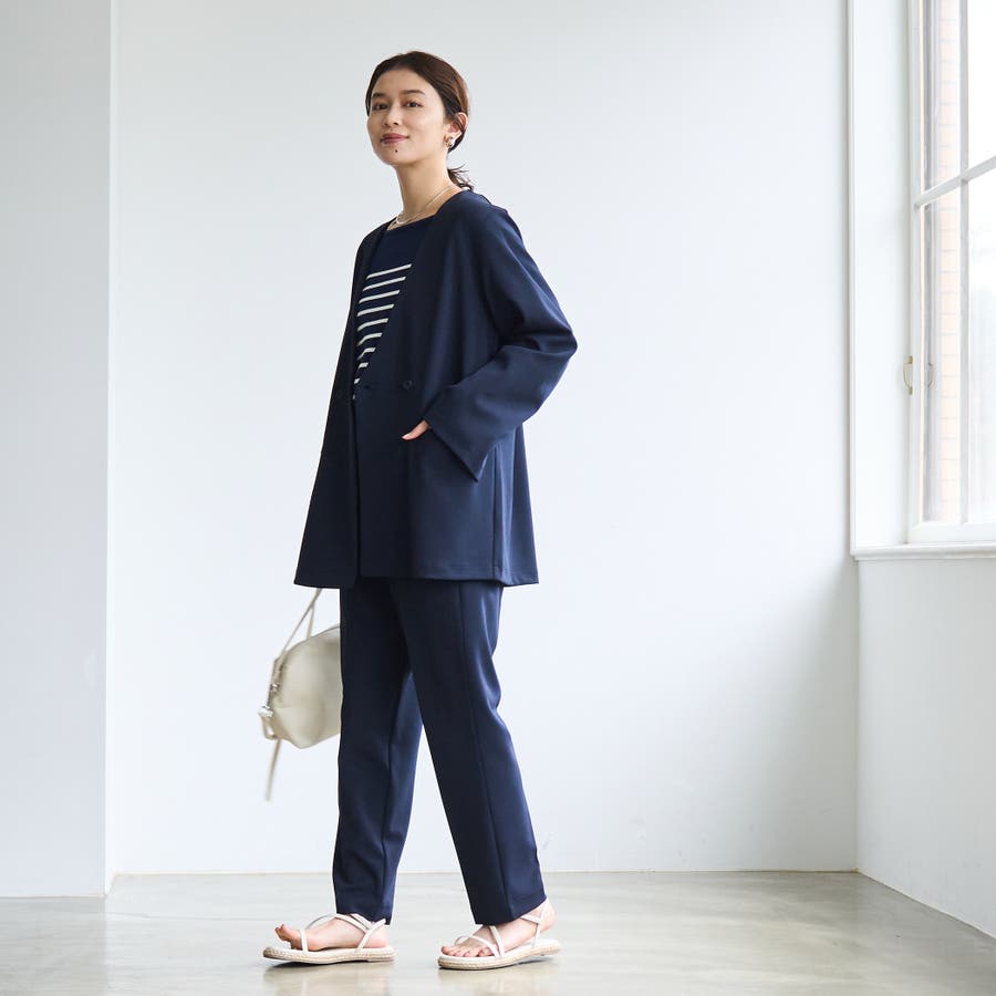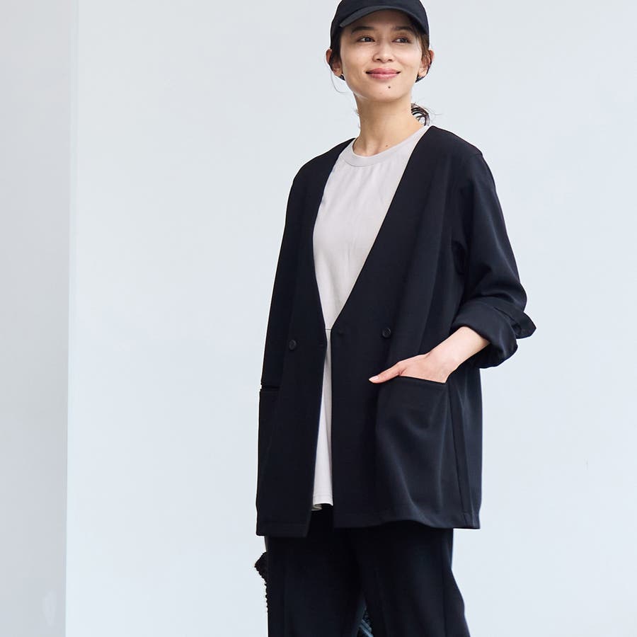 お仕事から母行事まで幅広いシーンで活躍してくれるノーカラージャケット