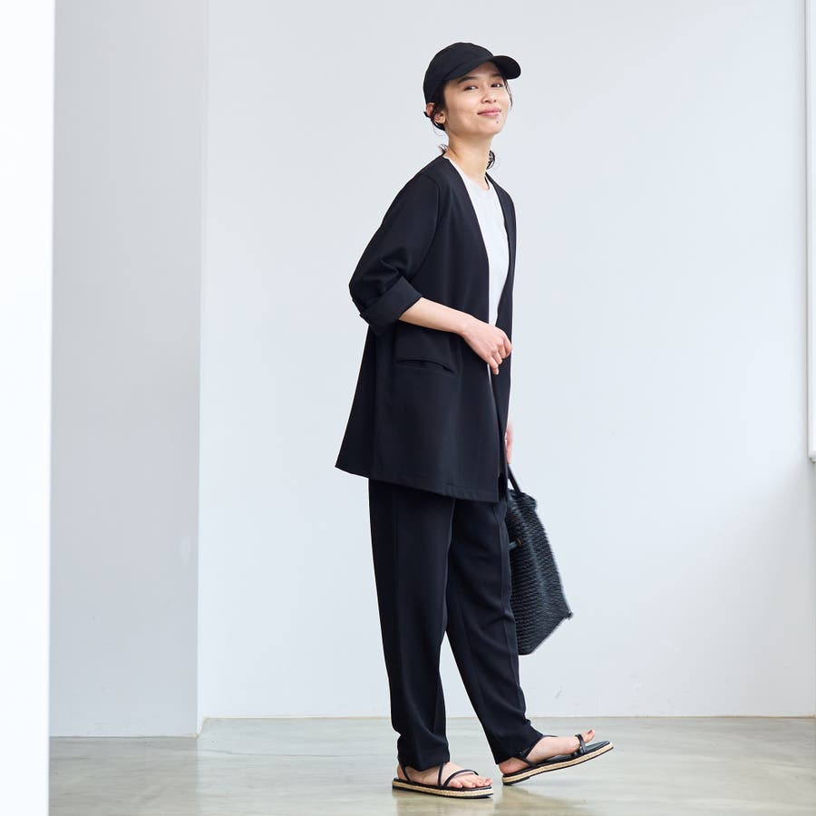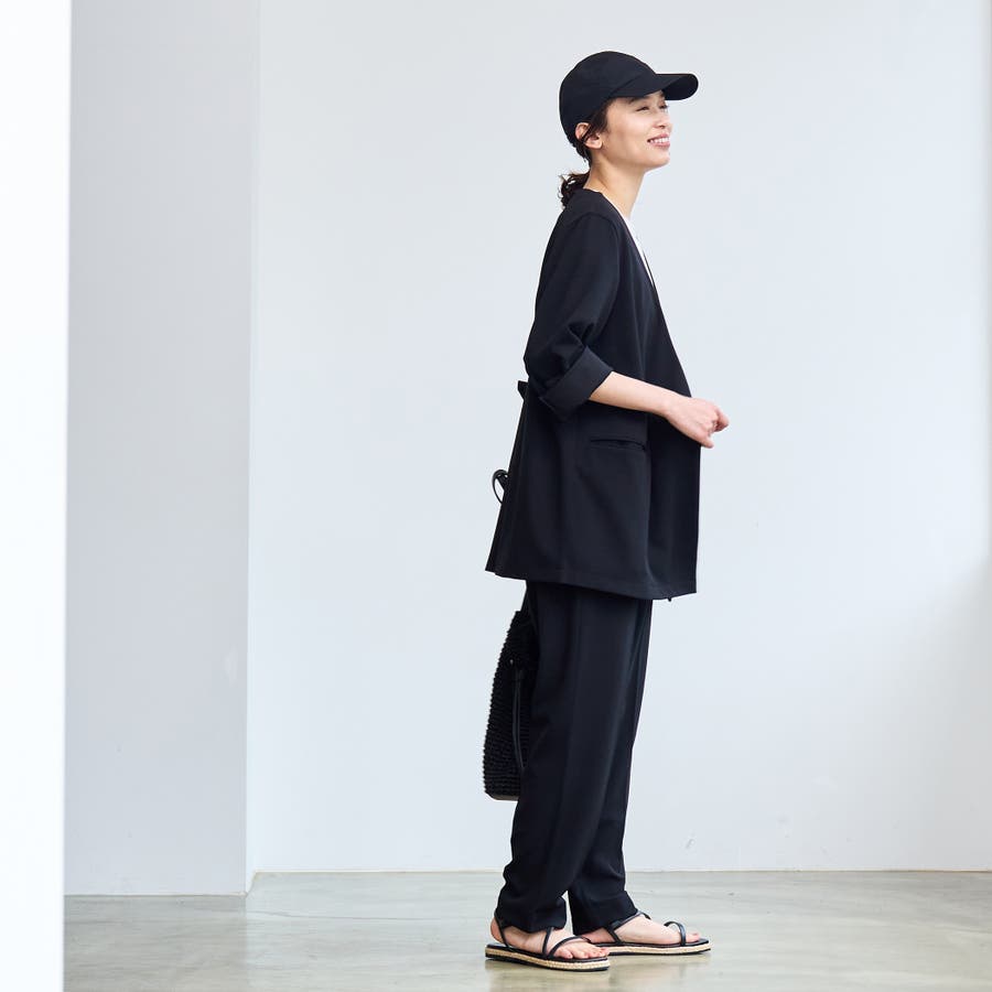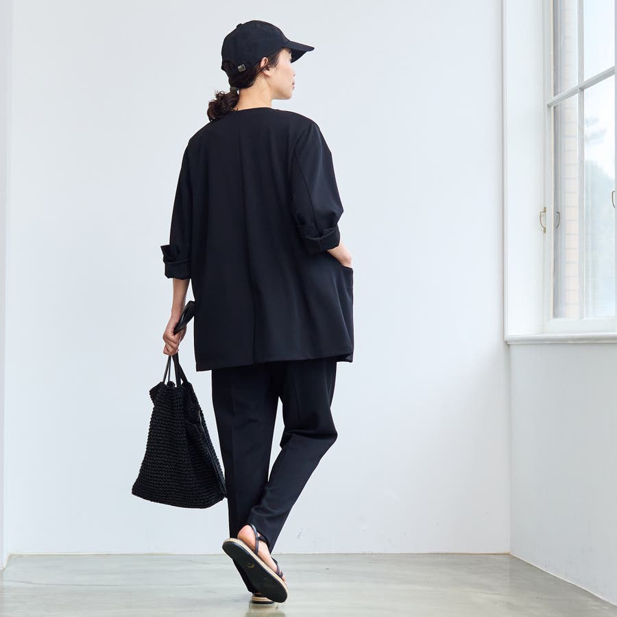 縦ラインを強調してくれる深Vと、ストンと落ちる余裕ラインが端正なムードのジャケット。シャツやブラウスにサッと羽織って通勤スタイル、Tシャツやカットソーとコーデしたお出かけスタイルと幅広く活躍してくれるアイテムです。同素材のテーパードパンツ(品番:76966420078)と合わせれば、気負いないセットアップスタイルが簡単に完成。エフォートレスなのにキチンと感をしっかりと演出できる今どきジャケットです。