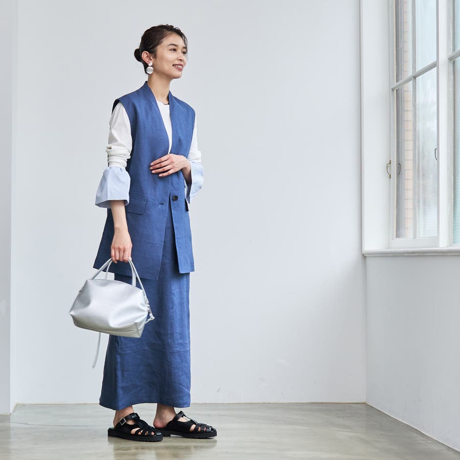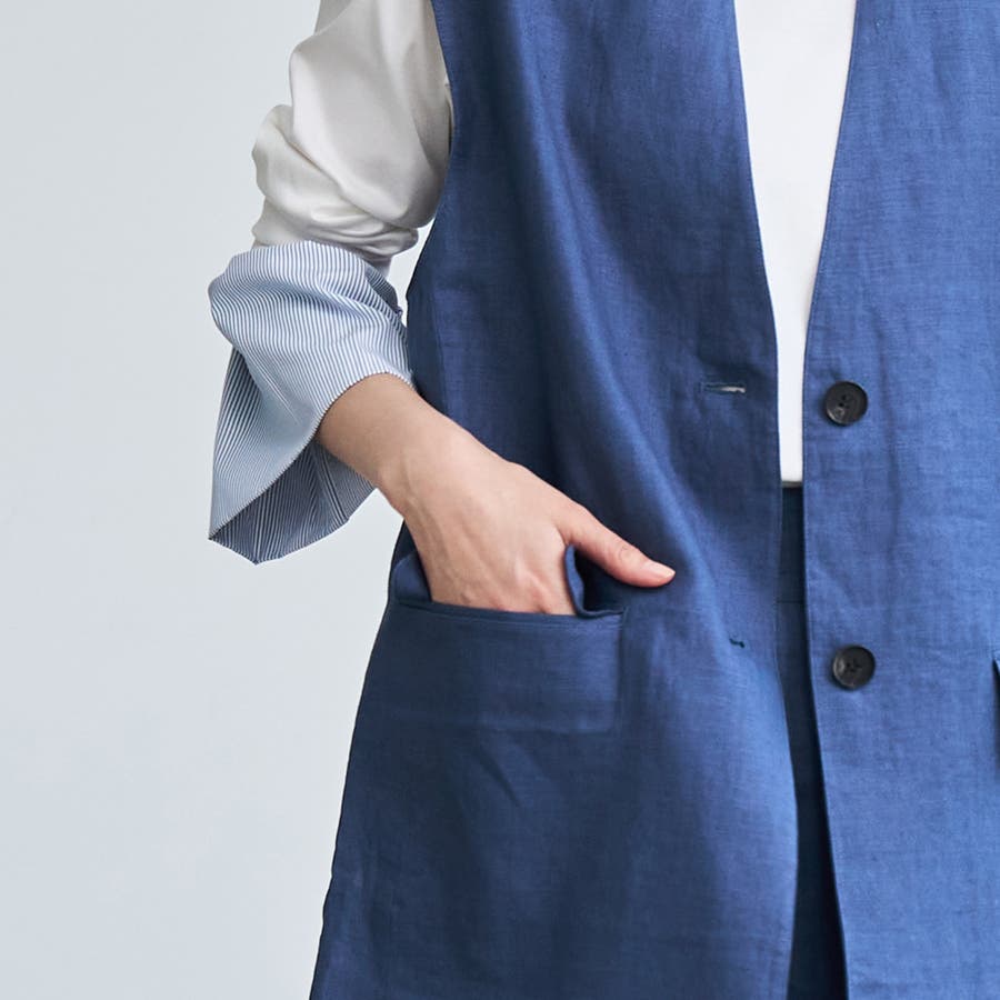 程よい肉感のフレンチリネンを使用したベスト。
