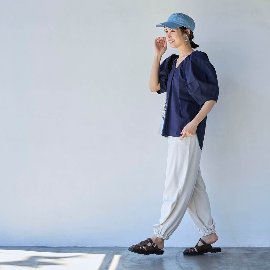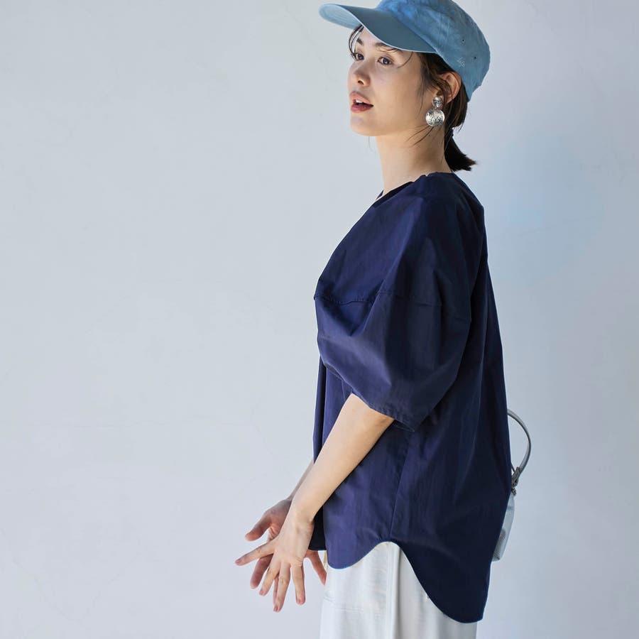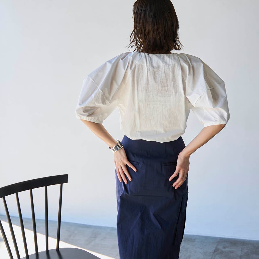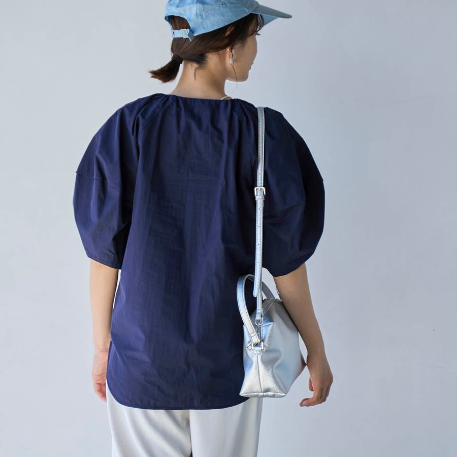 肩からお袖にかけてふんわりとしたボリュームをもたせたハーフスリーブシャツ。